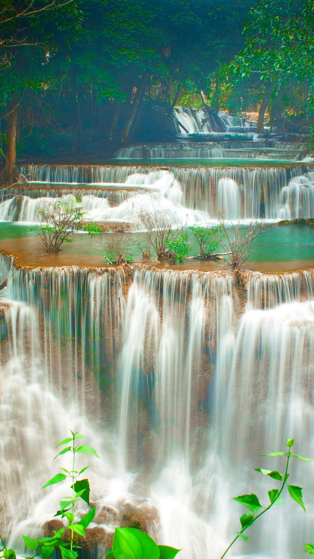 Hintergrundbilder 1080x1920 Wasserfälle im Wald Tagsüber, Android Phone Sony Xperia XA2/X/Z, Samsung Galaxy S4/S5/J7/A5, Meizu M5/M6 Note, Xiaomi Redmi Note 3 Full HD Bilder