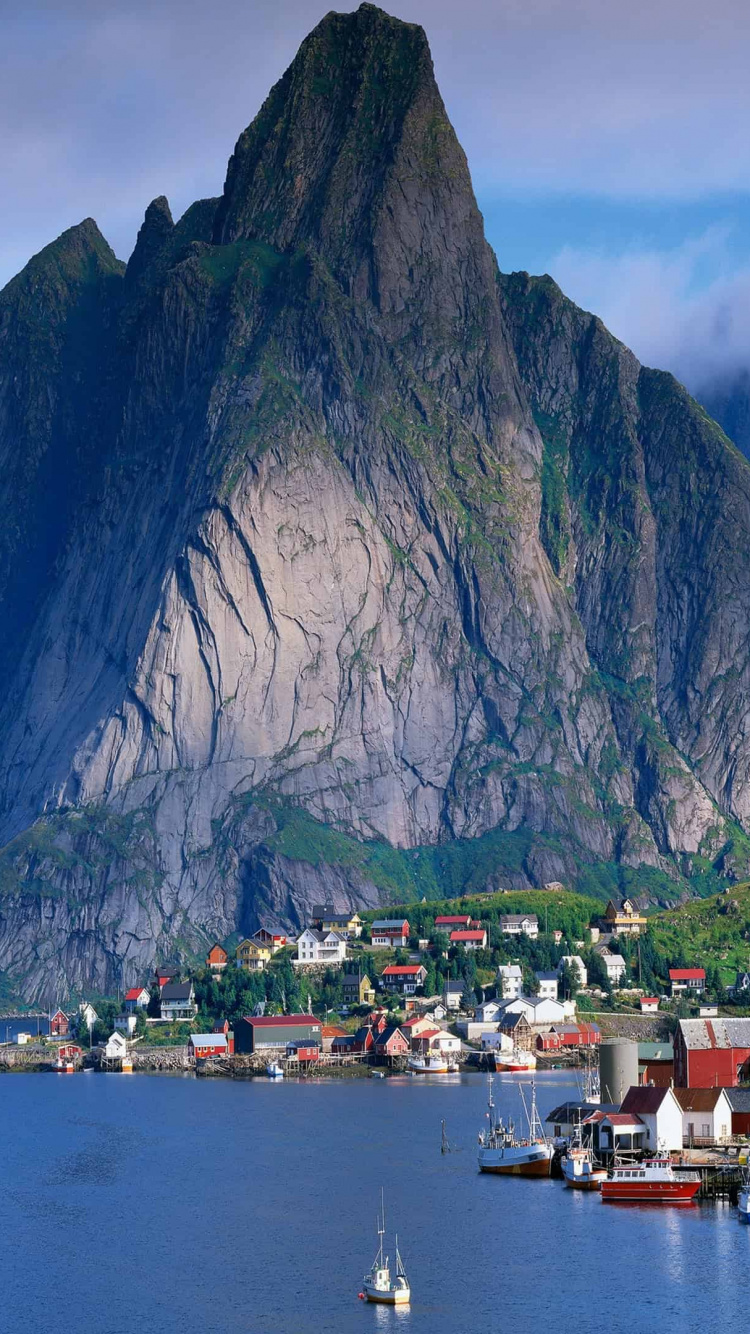 Hintergrundbilder 750x1334 Weißes Und Braunes Boot Auf Dem Meer in Der Nähe Des Berges Tagsüber, IPhone 6, 6S, 7, 8 Bilder