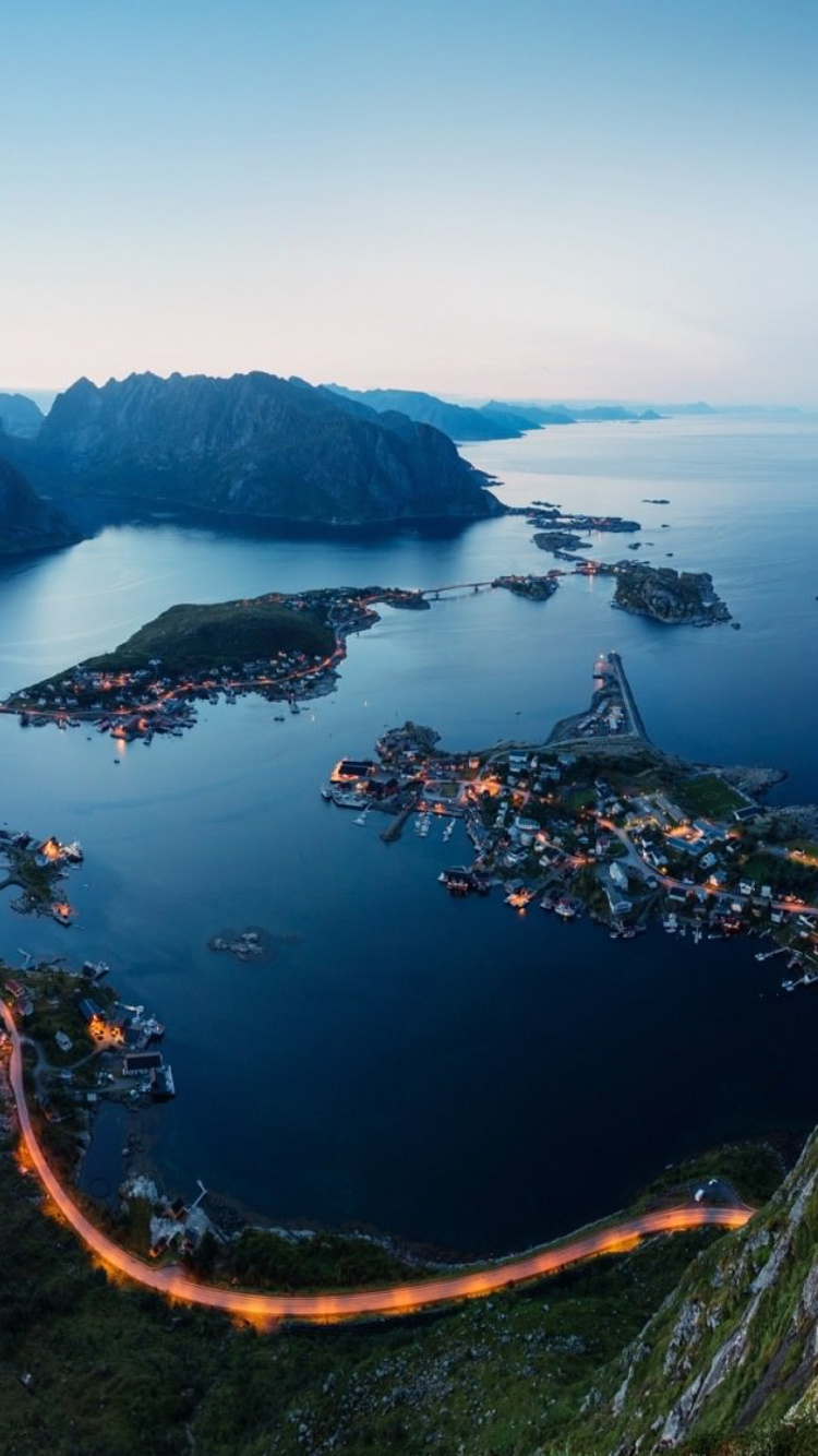 Hintergrundbilder 750x1334 Luftaufnahme Der Stadt in Der Nähe Des Sees Während Der Nachtzeit, IPhone 6, 6S, 7, 8 Bilder