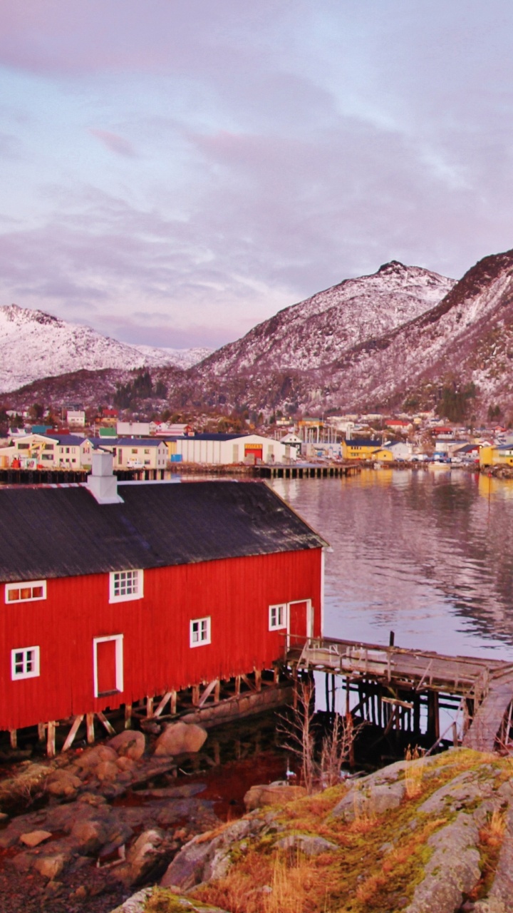 Hintergrundbilder 720x1280 Rot-weißes Haus in Der Nähe Von See Und Berg, Android Phone HD Samsung Galaxy S3/J3/J4/J5, Meizu M5, Sony Xperia L1/L2 Bilder