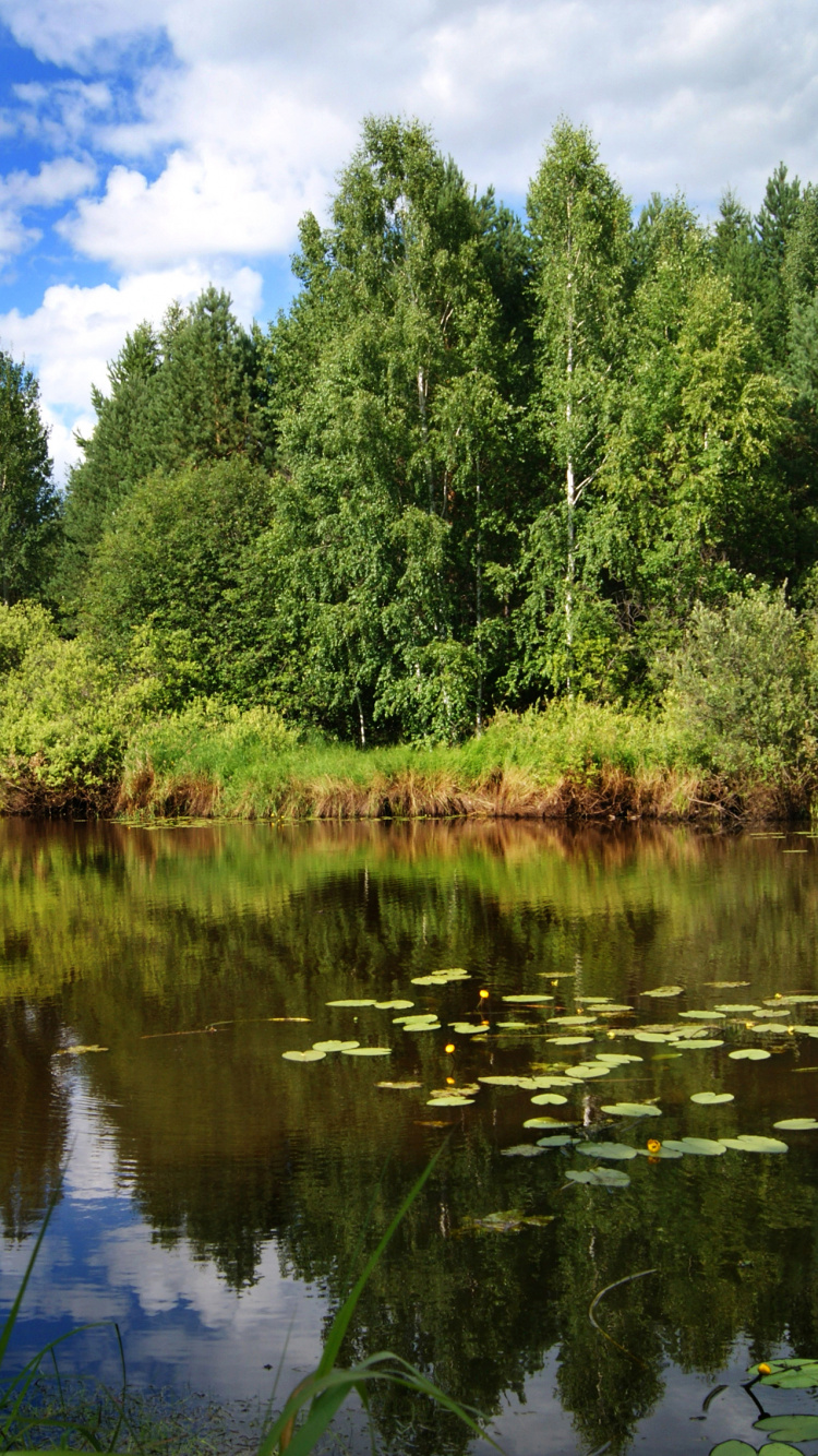 Hintergrundbilder 750x1334 Grüne Bäume am See Unter Blauem Himmel Tagsüber, IPhone 6, 6S, 7, 8 Bilder