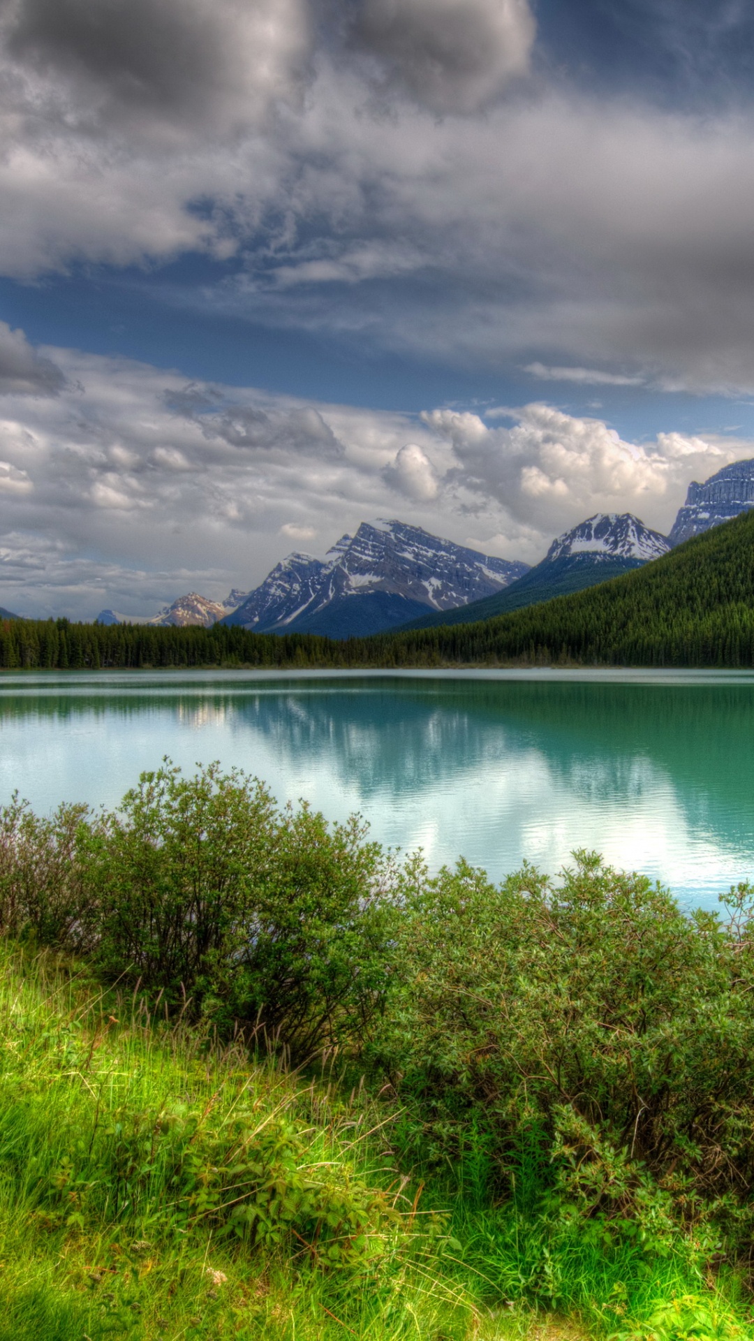Hintergrundbilder 1080x1920 Grüne Wiese in Der Nähe Des Sees Unter Bewölktem Himmel Tagsüber, IPhone 6S+/7+/8+ Bilder