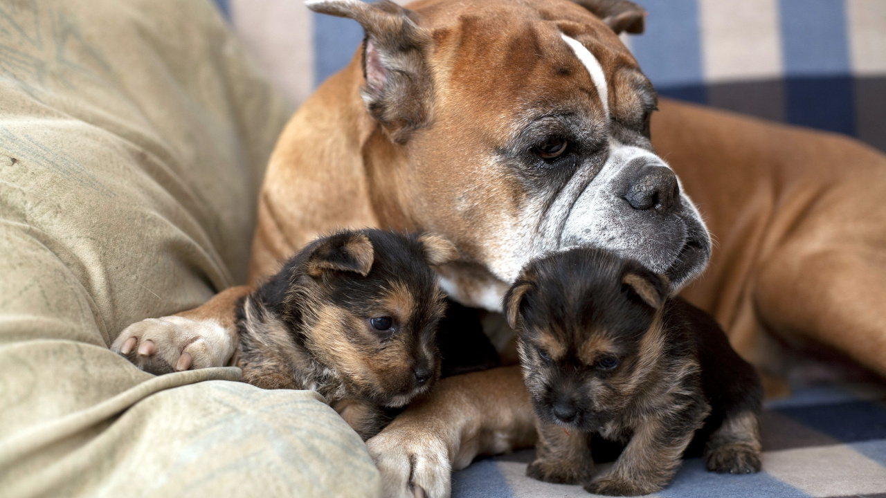Hintergrundbilder 1280x720 Braun-weißer Kurzhaariger Hund Auf Braunem Textil Liegend, HD, HDV, 720p, 16:9 Bilder