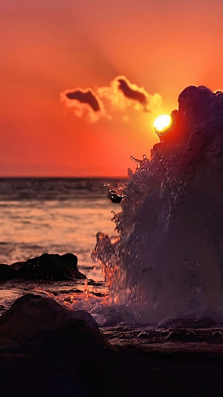 Hintergrundbilder 720x1280 Silhouette Einer Person, Die Während Des Sonnenuntergangs Auf Einem Felsen in Der Nähe Eines Gewässers Steht, Android Phone HD Samsung Galaxy S3/J3/J4/J5, Meizu M5, Sony Xperia L1/L2 Bilder