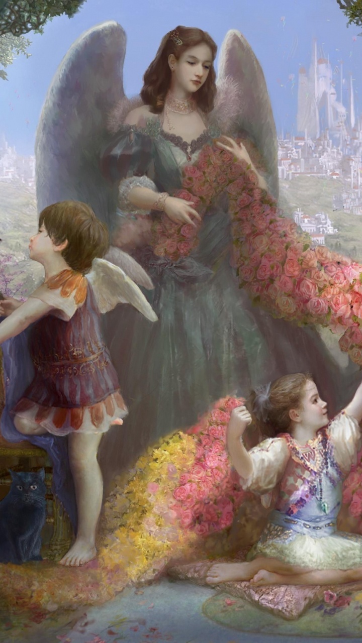 Hintergrundbilder 720x1280 Mädchen im Weißen Und Roten Kleid Steht Neben Mädchen im Weißen Kleid Malerei, Android Phone HD Samsung Galaxy S3/J3/J4/J5, Meizu M5, Sony Xperia L1/L2 Bilder