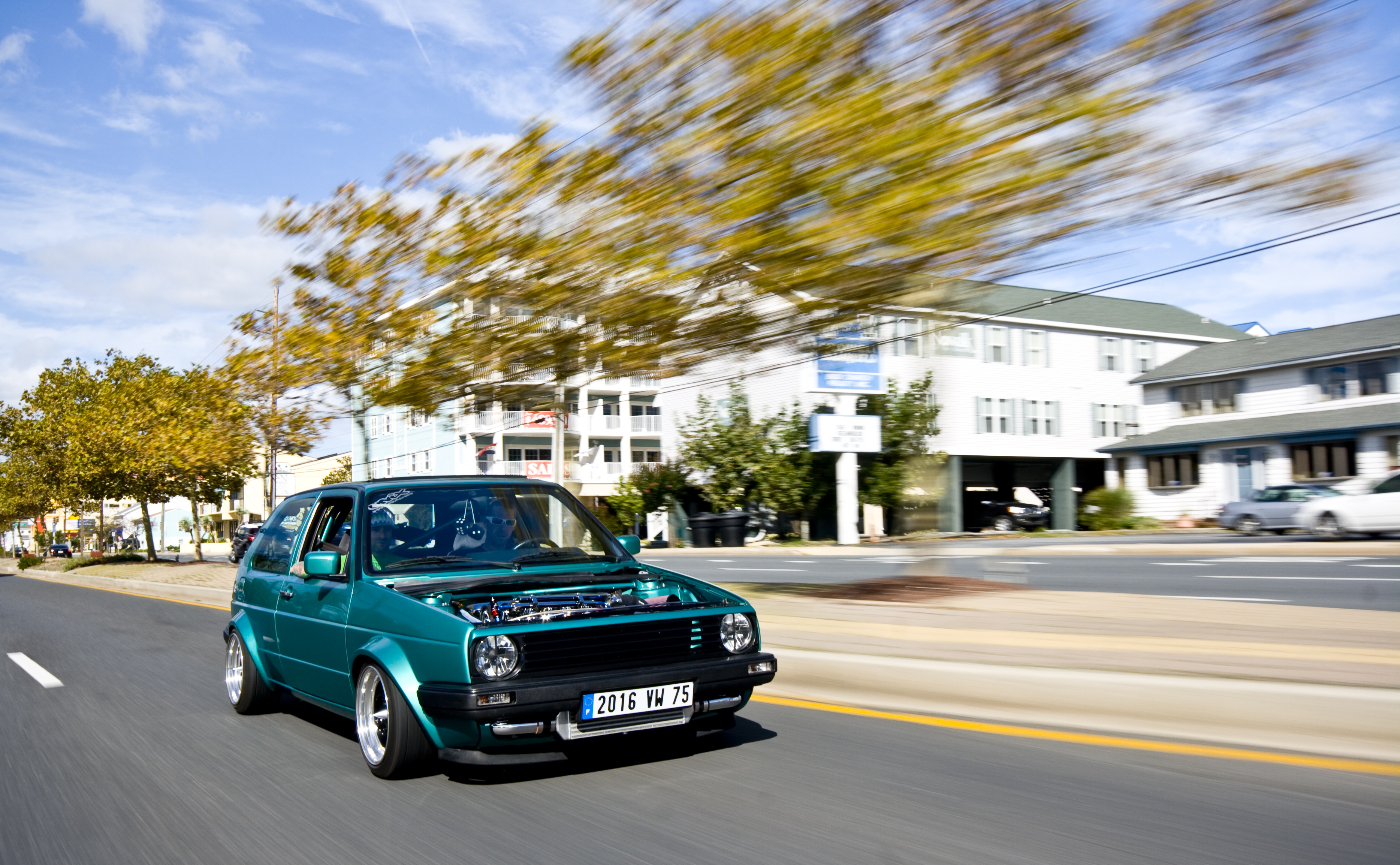 Hintergrundbilder Blauer Volkswagen Golf Tagsüber Unterwegs Road Bilder, Abbildungen