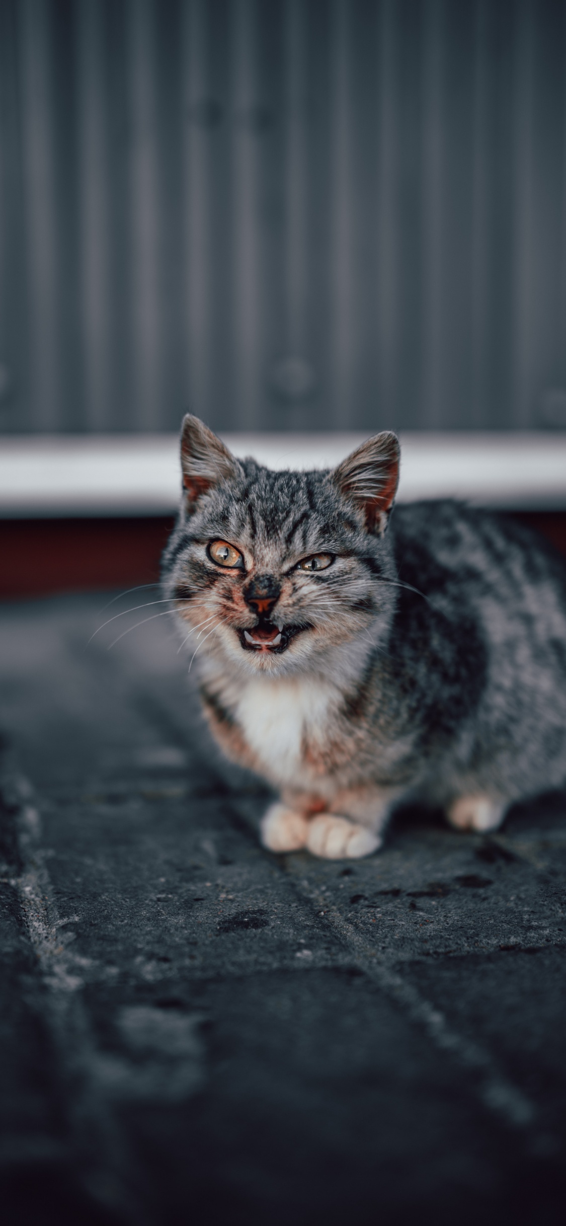 Hintergrundbilder 1125x2436 Braun Getigerte Katze Auf Schwarzem Betonboden, IPhone X / XS Bilder