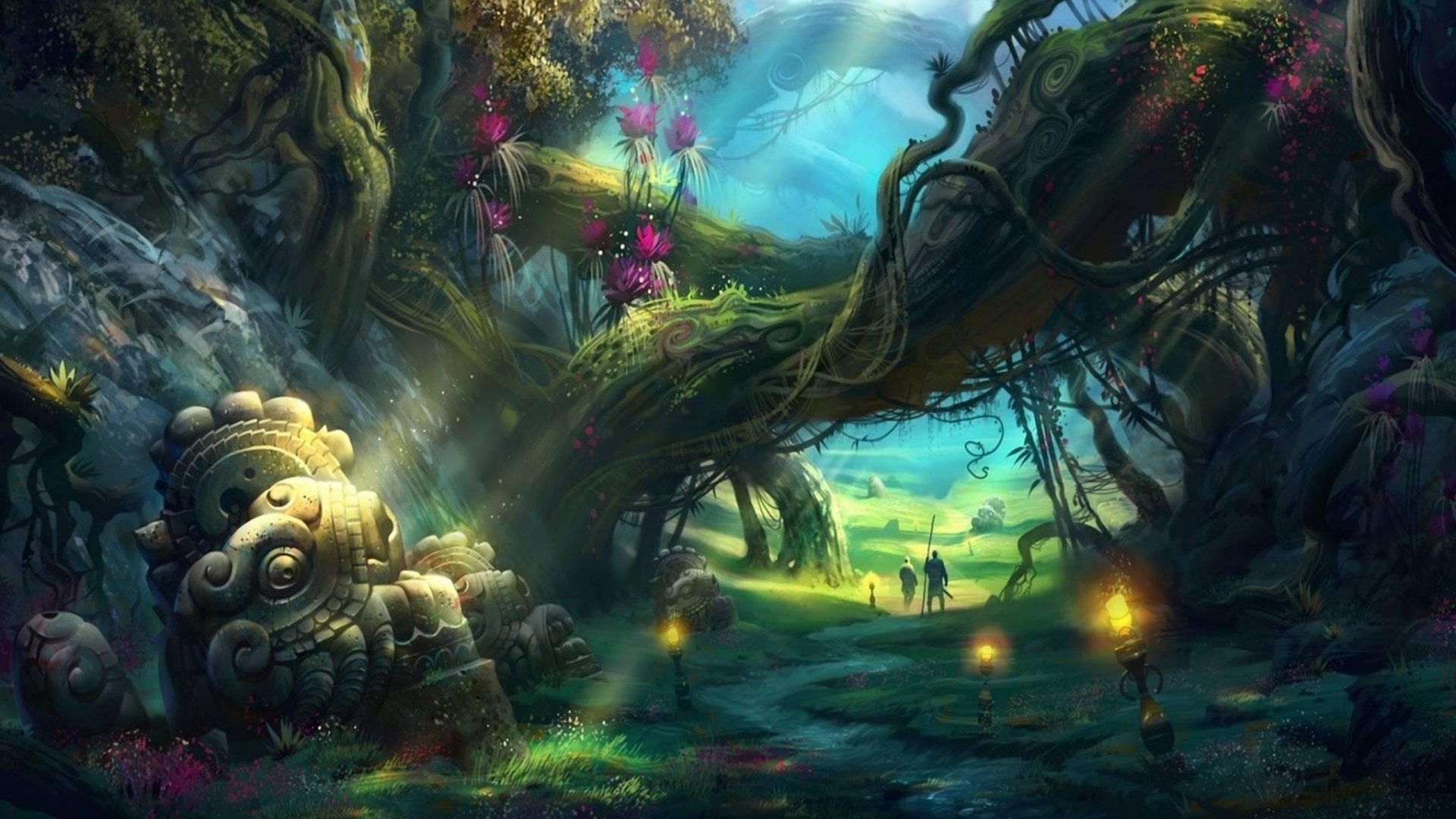 Hintergrundbilder 1920x1080 Grüner Und Brauner Baum Mit Lichtern, Full HD, HDTV, 1080p 16:9 Bilder