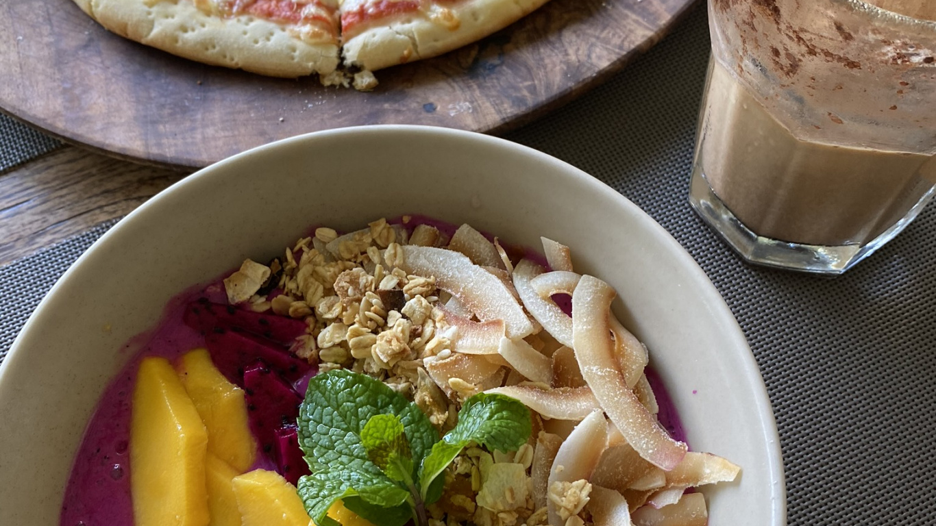 Hintergrundbilder 1366x768 Mahlzeit, Breakfast, Vegetarische Küche, Lebensmittel, Kochen, Laptop Bilder