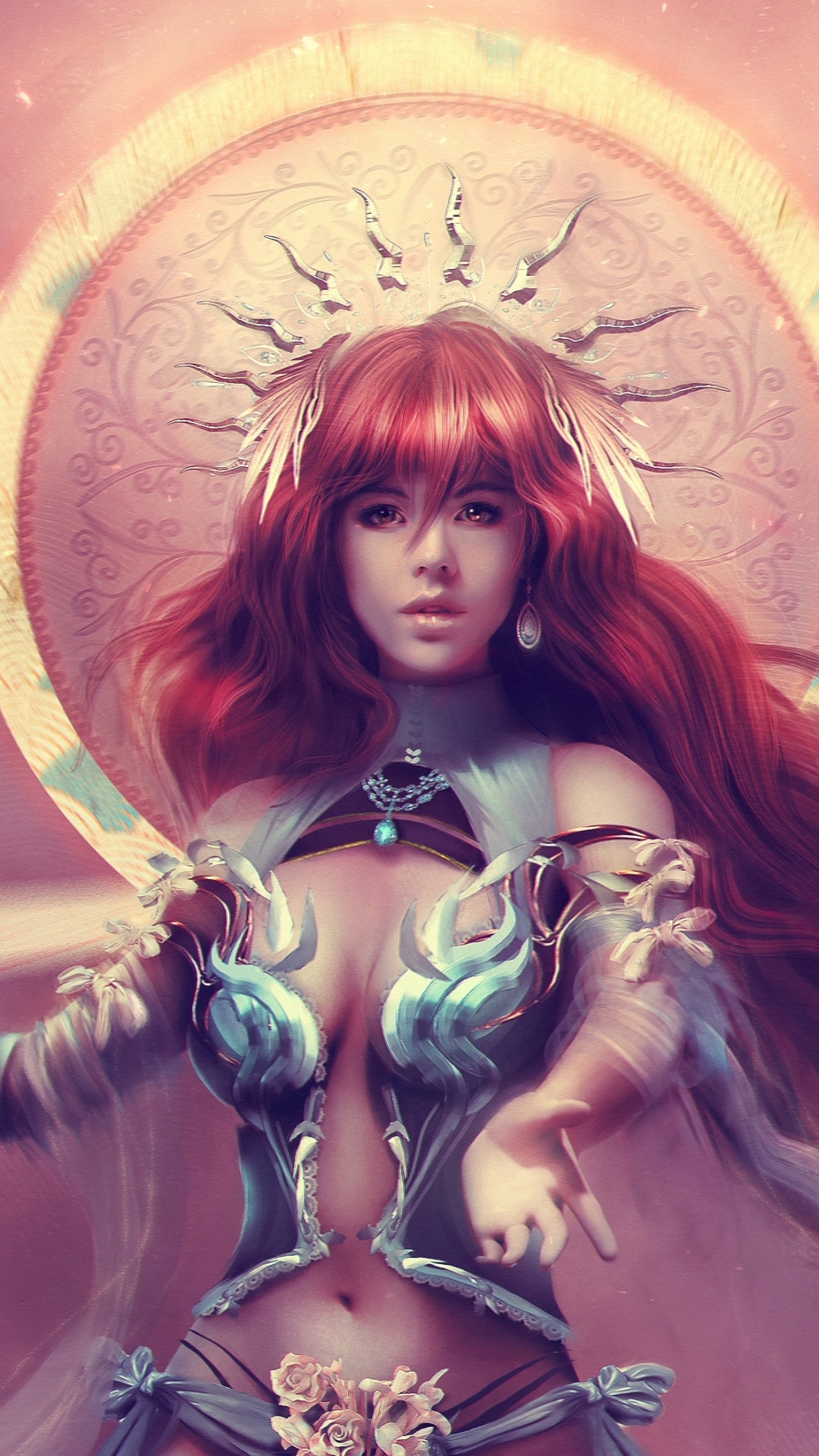 Hintergrundbilder 1080x1920 Frau im Blau-weißen Kleid Mit Flügelillustration, IPhone 6S+/7+/8+ Bilder