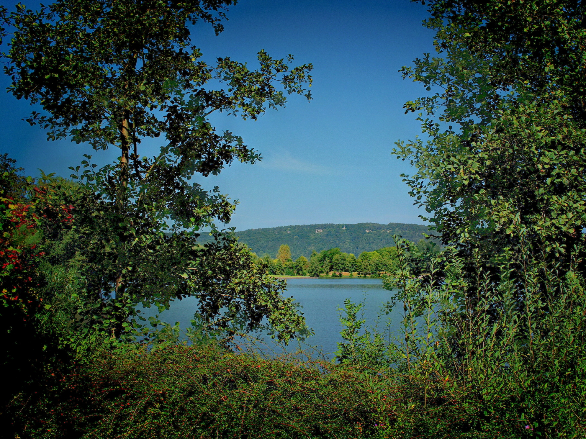 Hintergrundbilder Grüne Bäume in Der Nähe Des Sees Unter Blauem Himmel Tagsüber Bilder, Abbildungen
