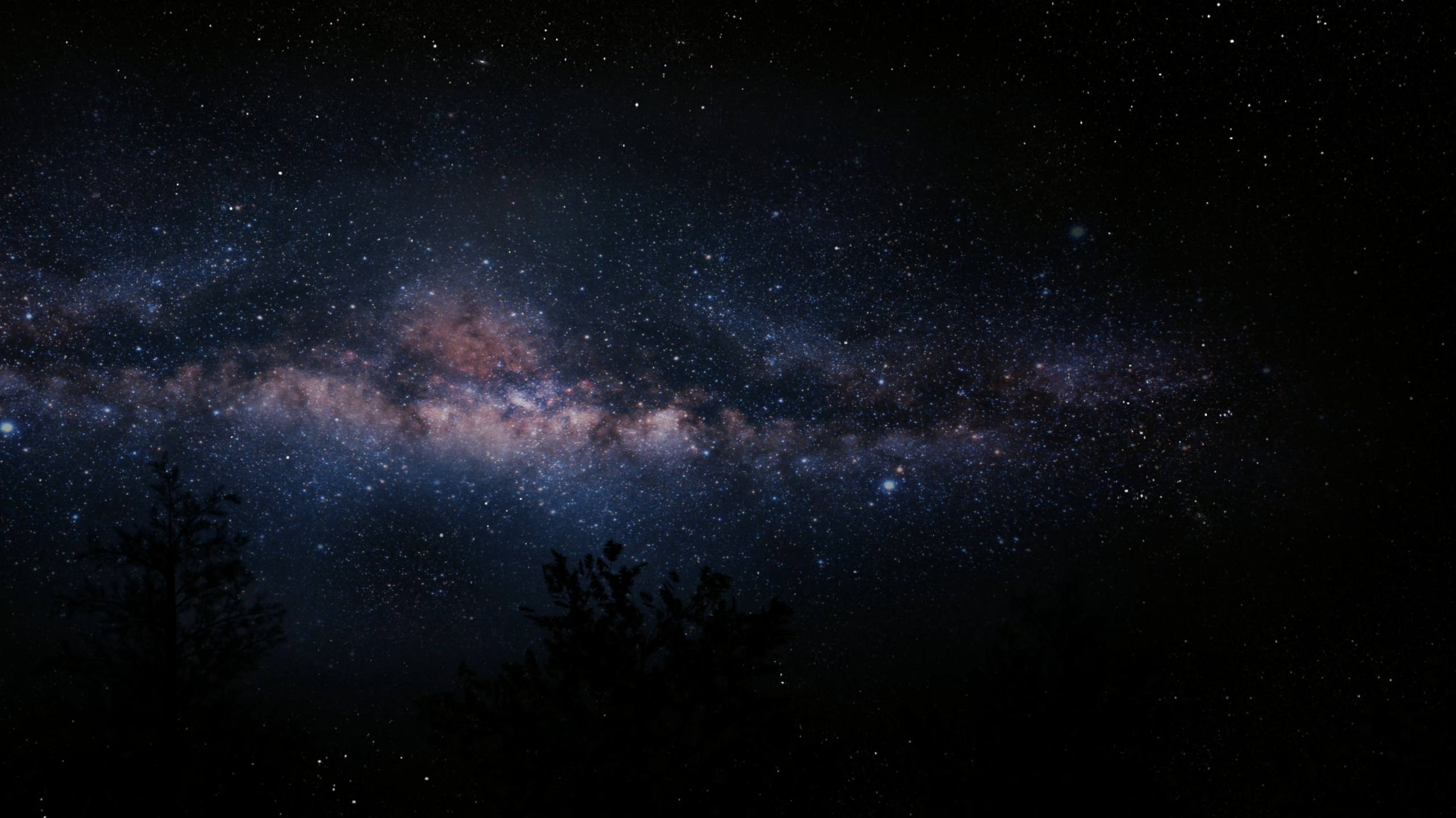 Hintergrundbilder 2560x1440 Silhouette Von Bäumen Unter Blauem Himmel Mit Sternen Während Der Nacht, WQHD, QHD, 16:9 Bilder