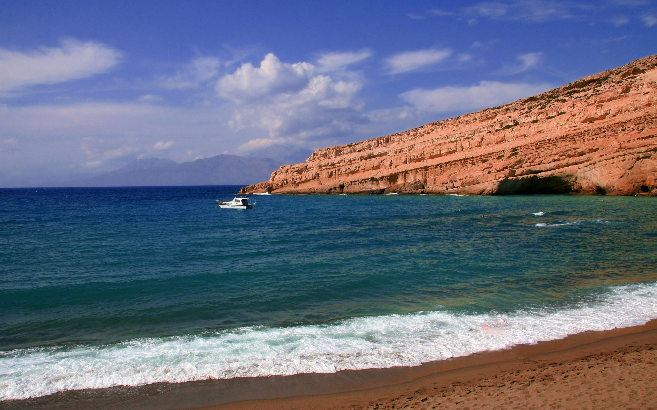 Hintergrundbilder Weißes Boot Auf Dem Meer in Der Nähe Einer Braunen Felsformation Unter Blauem Himmel Tagsüber During Bilder, Abbildungen