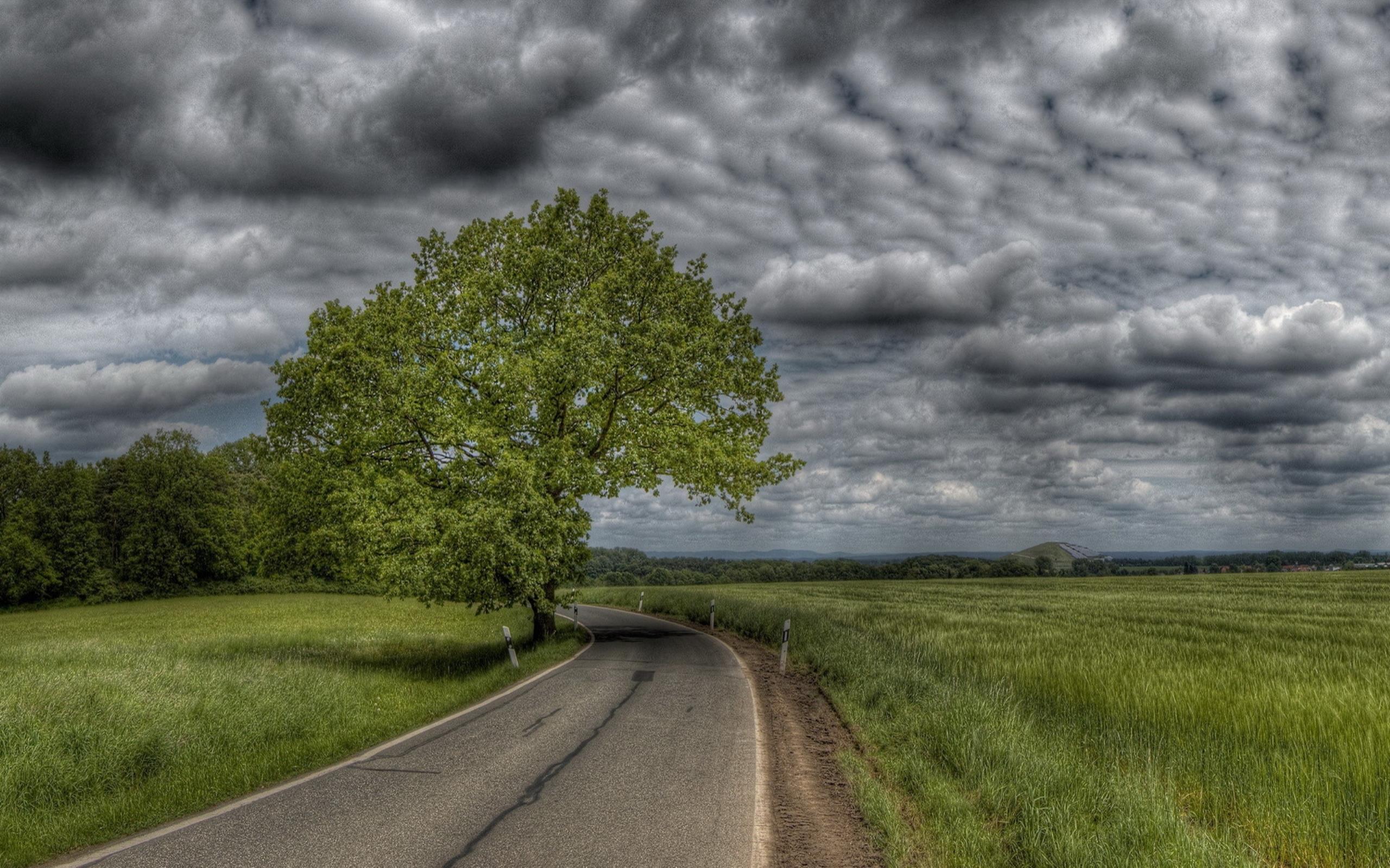 Hintergrundbilder Grüne Wiese in Der Nähe Der Straße Unter Grauen Wolken Bilder, Abbildungen
