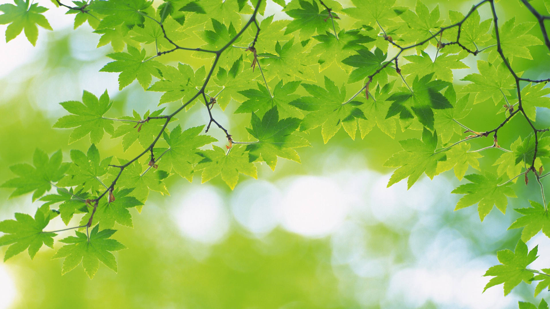 Hintergrundbilder 1920x1080 Grüne Blätter in Tilt-Shift-Linse, Full HD, HDTV, 1080p 16:9 Bilder