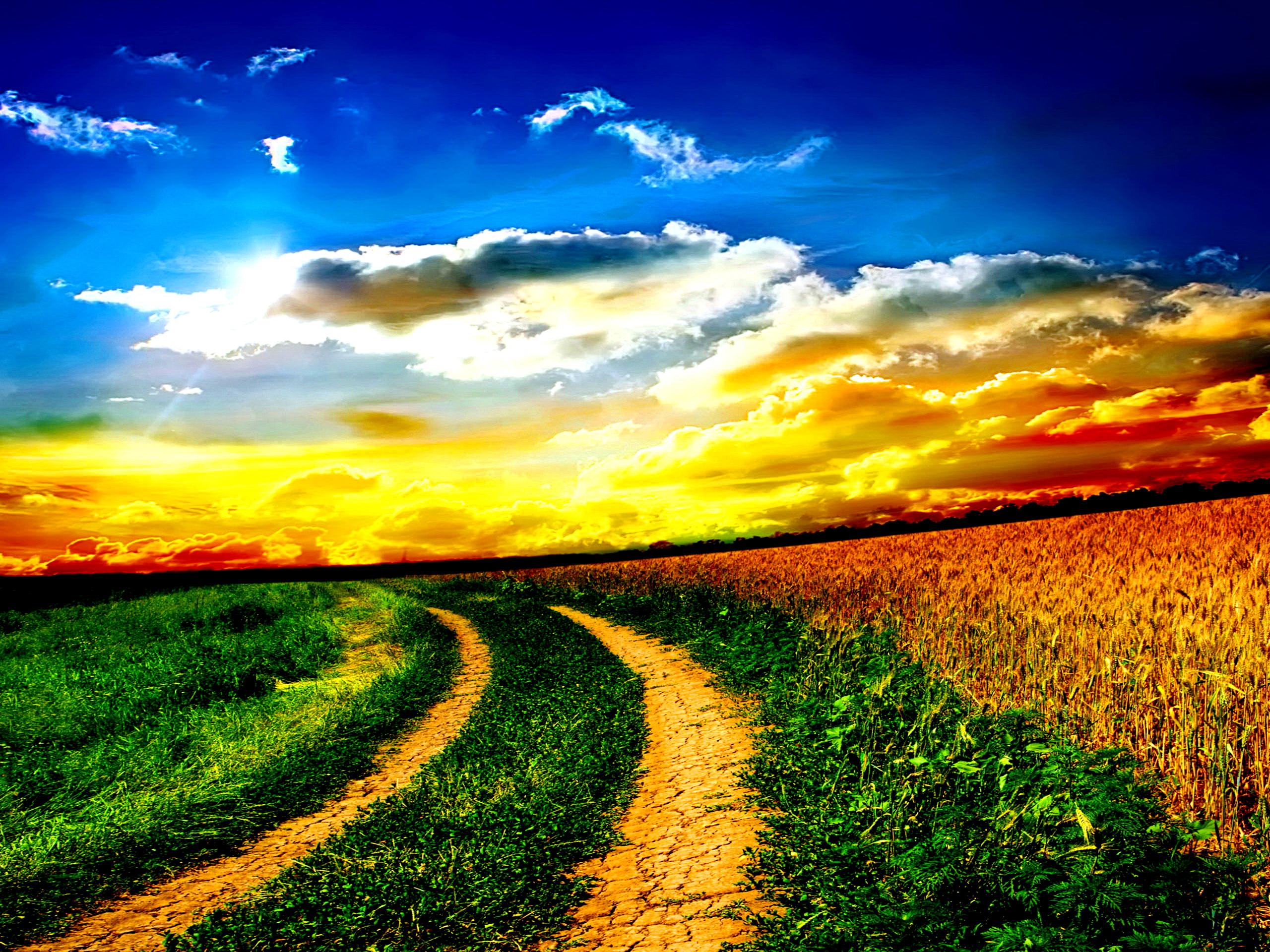 Hintergrundbilder Grüne Wiese Unter Blauem Himmel Bei Sonnenuntergang Bilder, Abbildungen