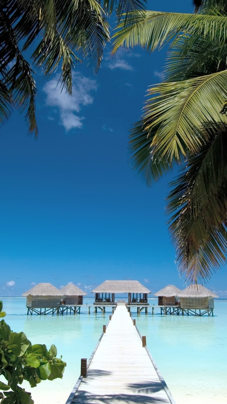 Hintergrundbilder 750x1334 Weißes Holzdock am Strand Tagsüber, IPhone 6, 6S, 7, 8 Bilder