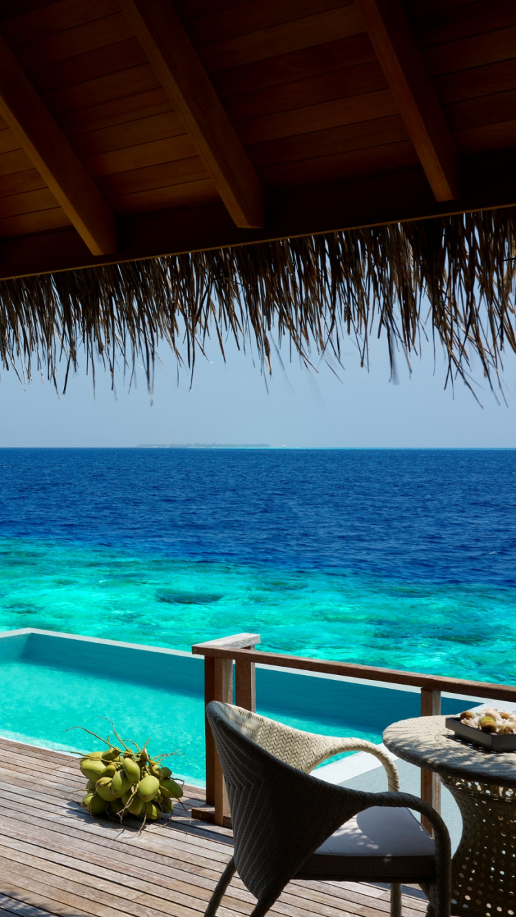 Hintergrundbilder 750x1334 Brauner Holztisch Und Stühle Auf Braunem Holzdeck in Der Nähe Des Blauen Meeres Tagsüber, IPhone 6, 6S, 7, 8 Bilder
