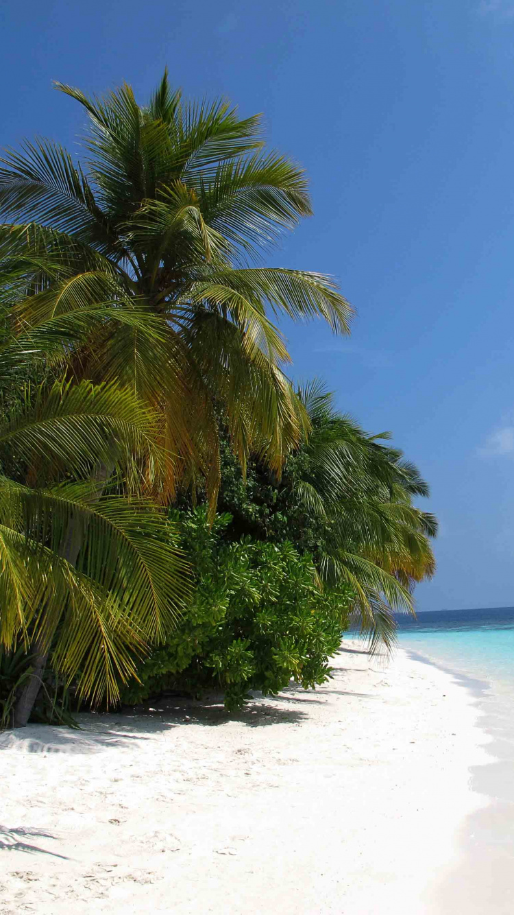 Hintergrundbilder 750x1334 Grüne Palme am Weißen Sandstrand Tagsüber, IPhone 6, 6S, 7, 8 Bilder