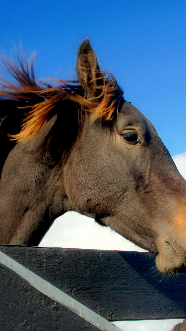 Hintergrundbilder 750x1334 Braunes Pferd, Das Tagsüber Auf Grauem Holzzaun Steht, IPhone 6, 6S, 7, 8 Bilder