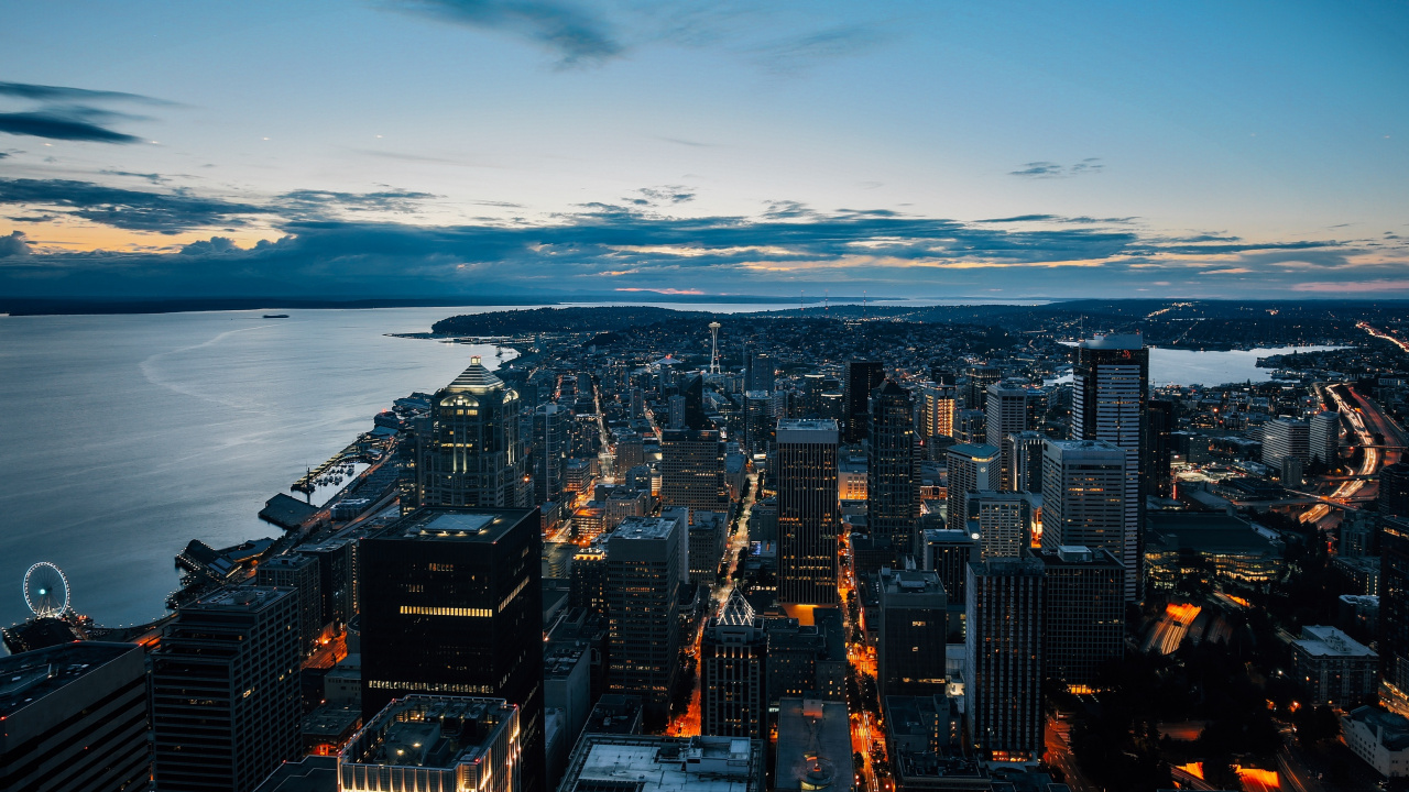 Hintergrundbilder 1280x720 Skyline Der Stadt in Der Nähe Von Gewässern Während Der Nacht, HD, HDV, 720p, 16:9 Bilder