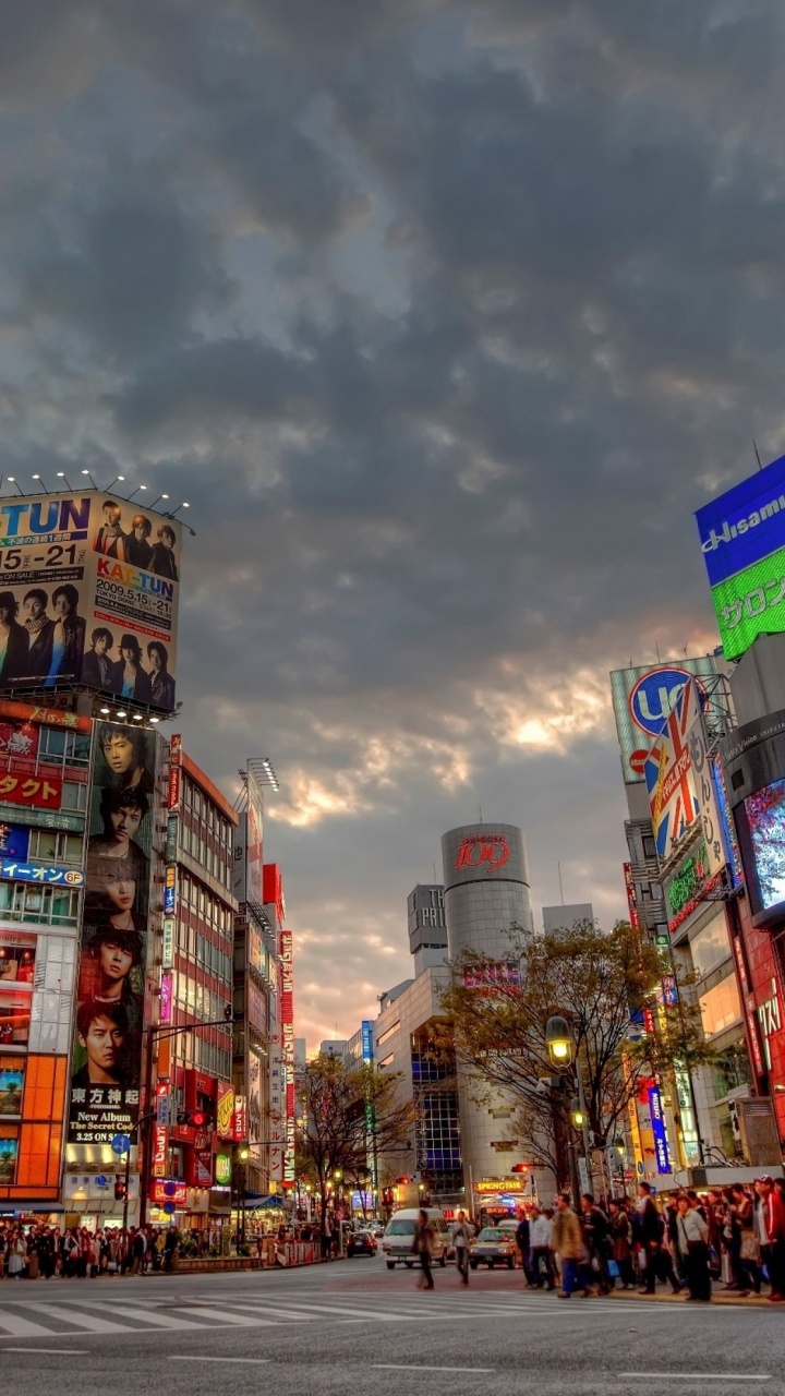 Hintergrundbilder 720x1280 Menschen, Die Nachts Auf Der Straße in Der Nähe Von Hochhäusern Gehen, Android Phone HD Samsung Galaxy S3/J3/J4/J5, Meizu M5, Sony Xperia L1/L2 Bilder