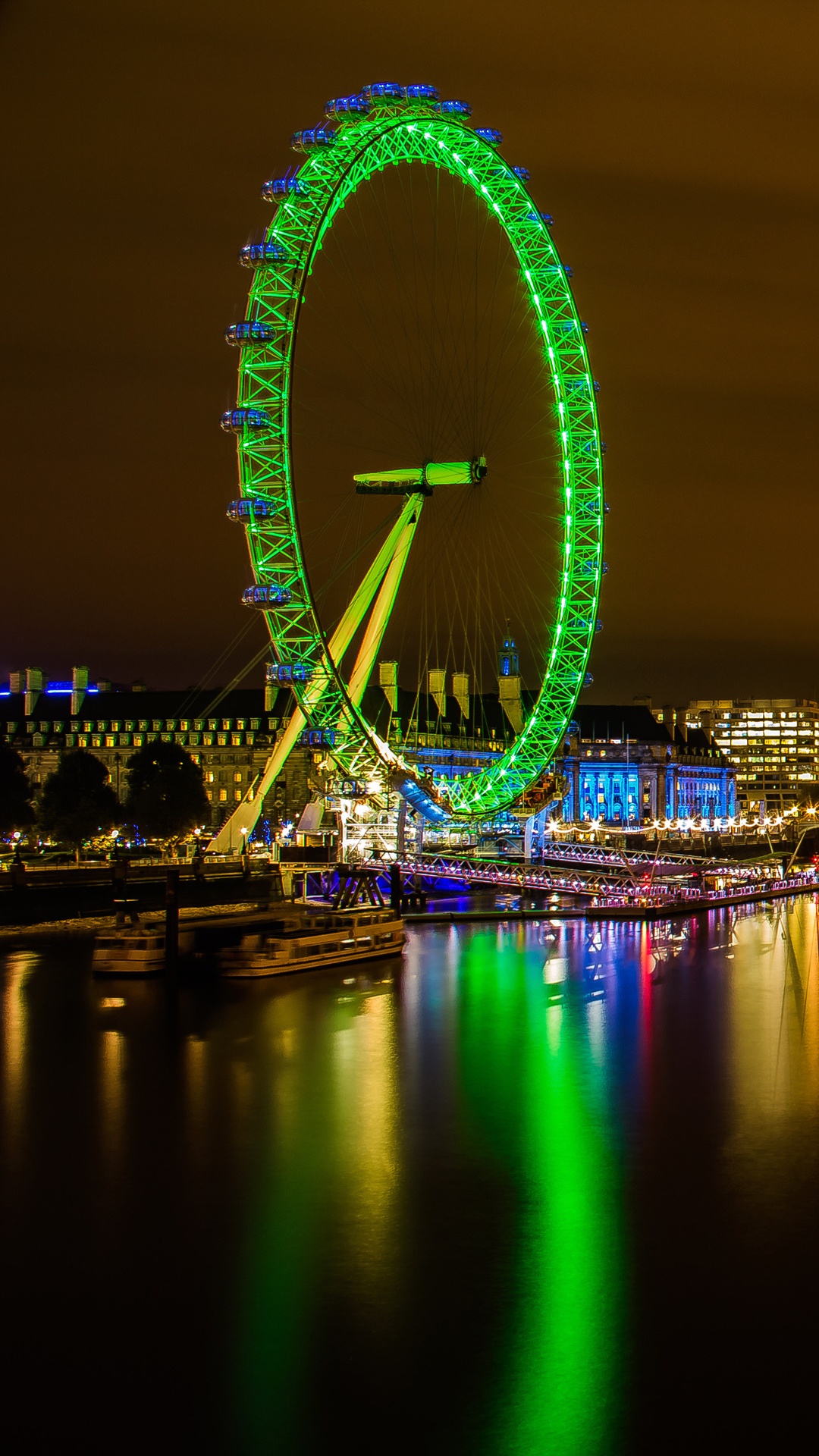 Hintergrundbilder 1080x1920 Riesenrad in Der Nähe Von Stadtgebäuden Während Der Nacht, IPhone 6S+/7+/8+ Bilder