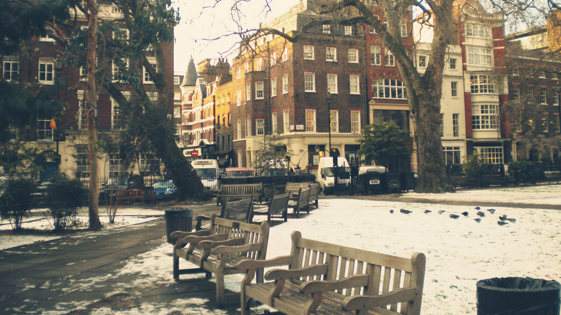 Hintergrundbilder 1920x1080 Braune Holzbank Auf Schneebedecktem Boden, Full HD, HDTV, 1080p 16:9 Bilder