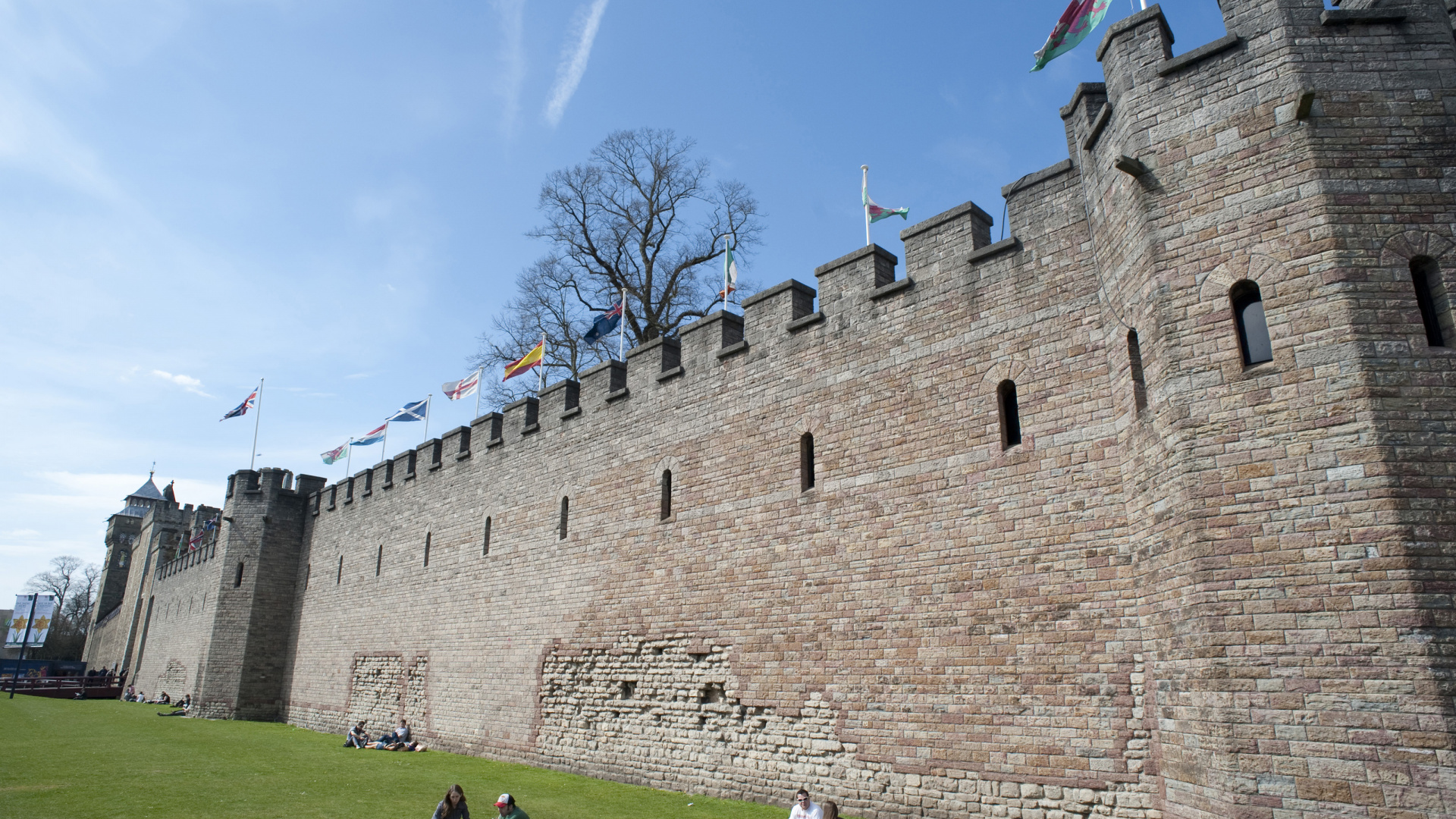 Hintergrundbilder 1920x1080 Menschen, Die Tagsüber Auf Einer Grünen Wiese in Der Nähe Eines Braunen Betongebäudes Gehen, Full HD, HDTV, 1080p 16:9 Bilder
