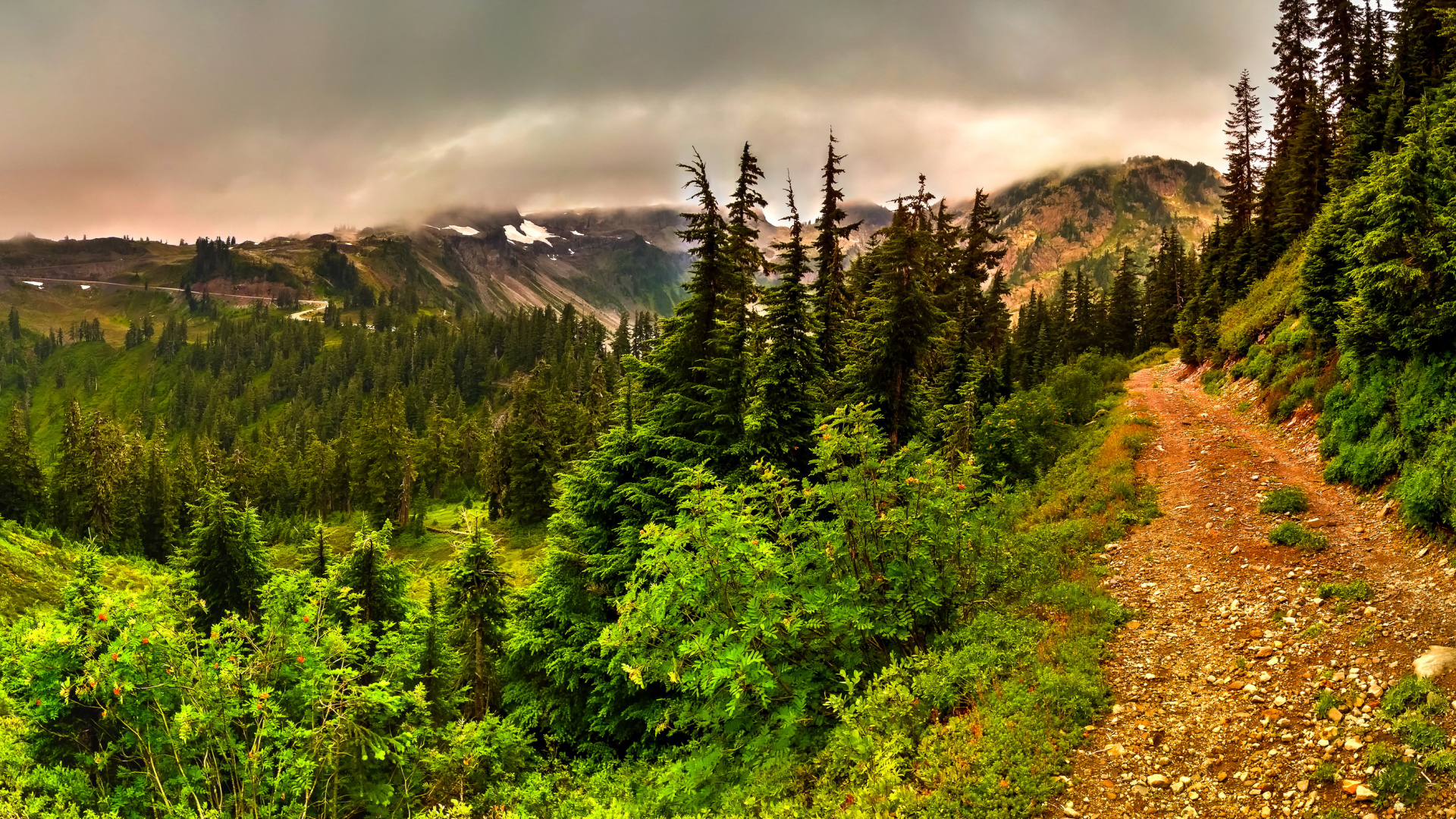 Hintergrundbilder 1920x1080 Grüne Pinien Auf Dem Berg Unter Bewölktem Himmel Tagsüber, Full HD, HDTV, 1080p 16:9 Bilder