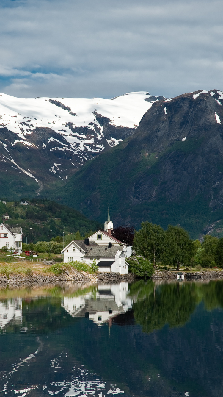 Fondos 750x1334 Casa Blanca Cerca Del Lago y Las Montañas, IPhone 6, 6S, 7, 8 Imágenes