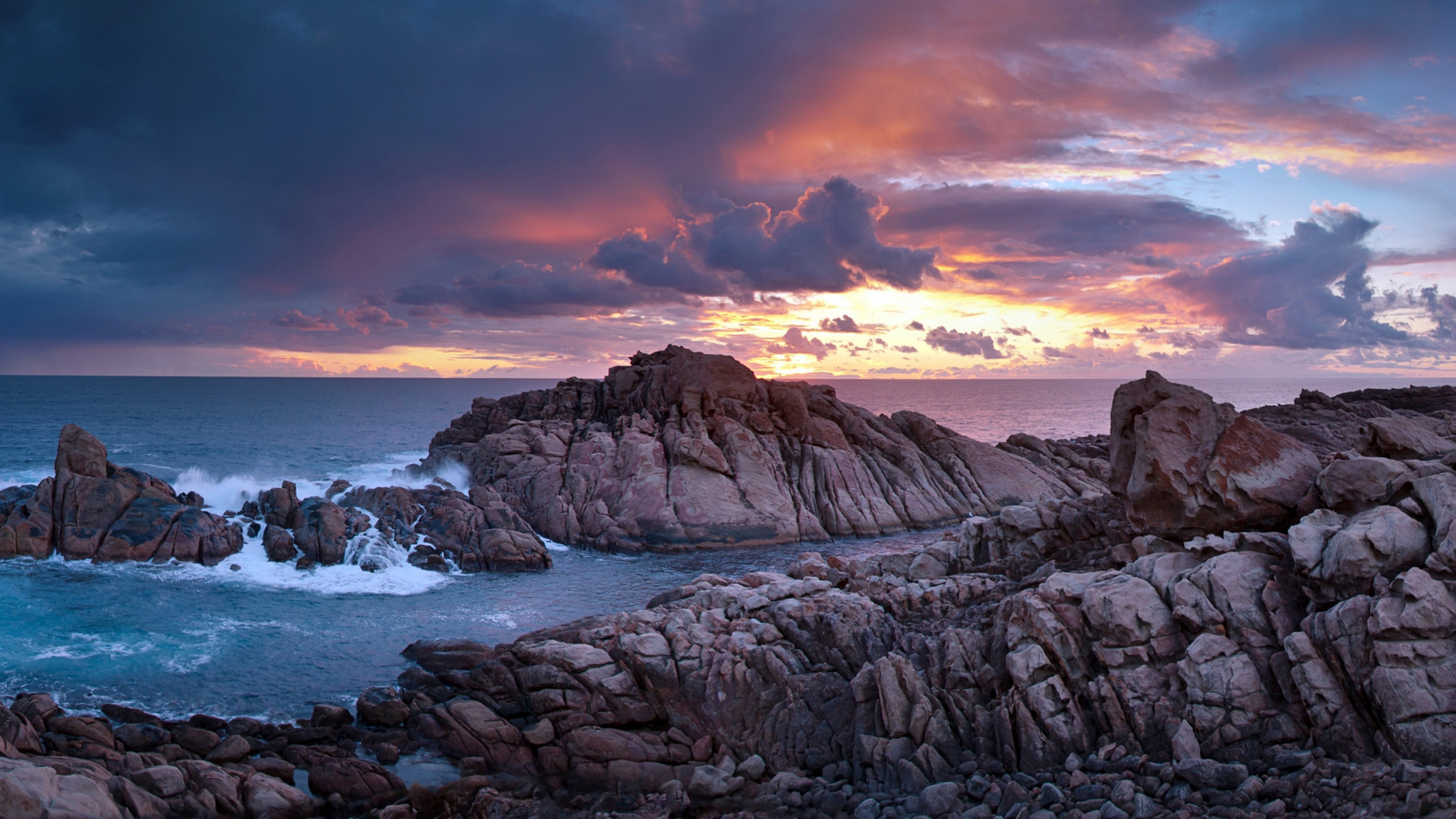 Fondos 2560x1440 Formación de Roca Marrón Cerca Del Cuerpo de Agua Durante la Puesta de Sol, WQHD, QHD, 16:9 Imágenes