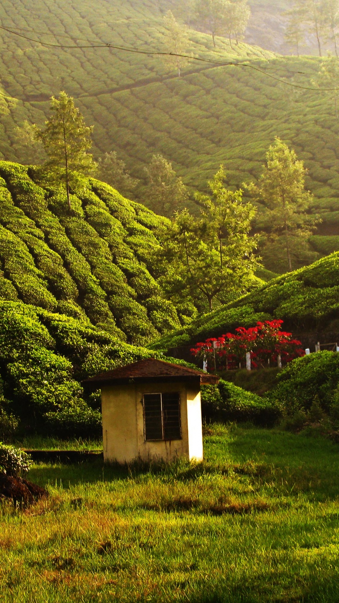 Fondos 1080x1920 Casa Blanca y Marrón en el Campo de Hierba Verde Cerca de la Montaña, IPhone 6S+/7+/8+ Imágenes
