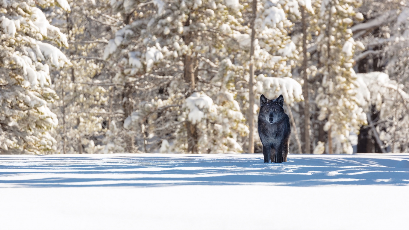 Fondos 1366x768 Gato Negro Sobre Suelo Cubierto de Nieve Durante el Día, Laptop Imágenes
