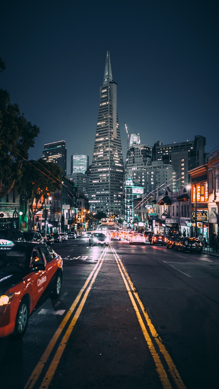 Fondos 720x1280 Coches en la Carretera Cerca de Edificios de Gran Altura Durante la Noche, Android Phone HD Samsung Galaxy S3/J3/J4/J5, Meizu M5, Sony Xperia L1/L2 Imágenes
