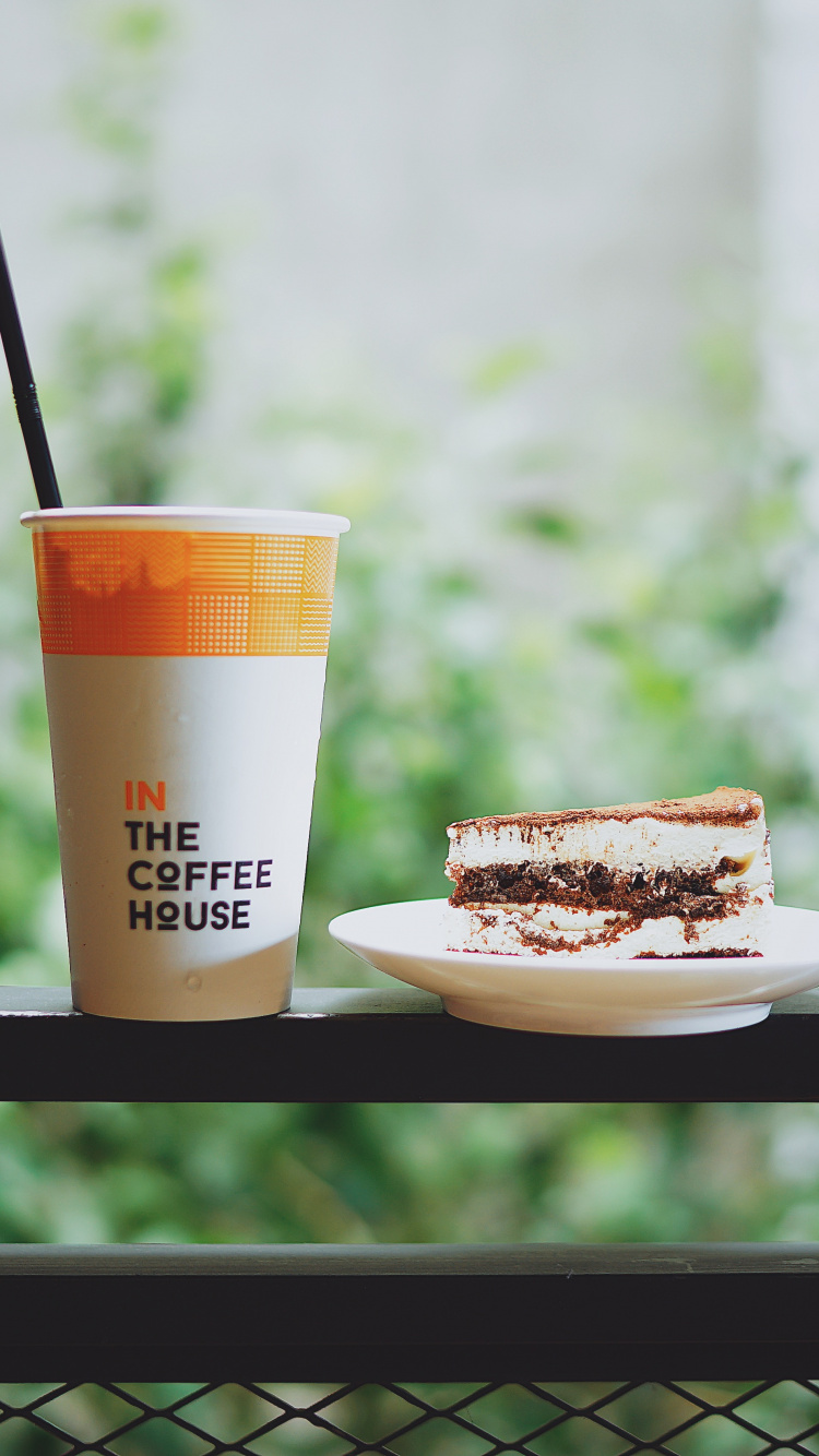 Fondos 750x1334 Dos Vasos Desechables de Color Blanco y Marrón Sobre Placa de Cerámica Blanca, IPhone 6, 6S, 7, 8 Imágenes