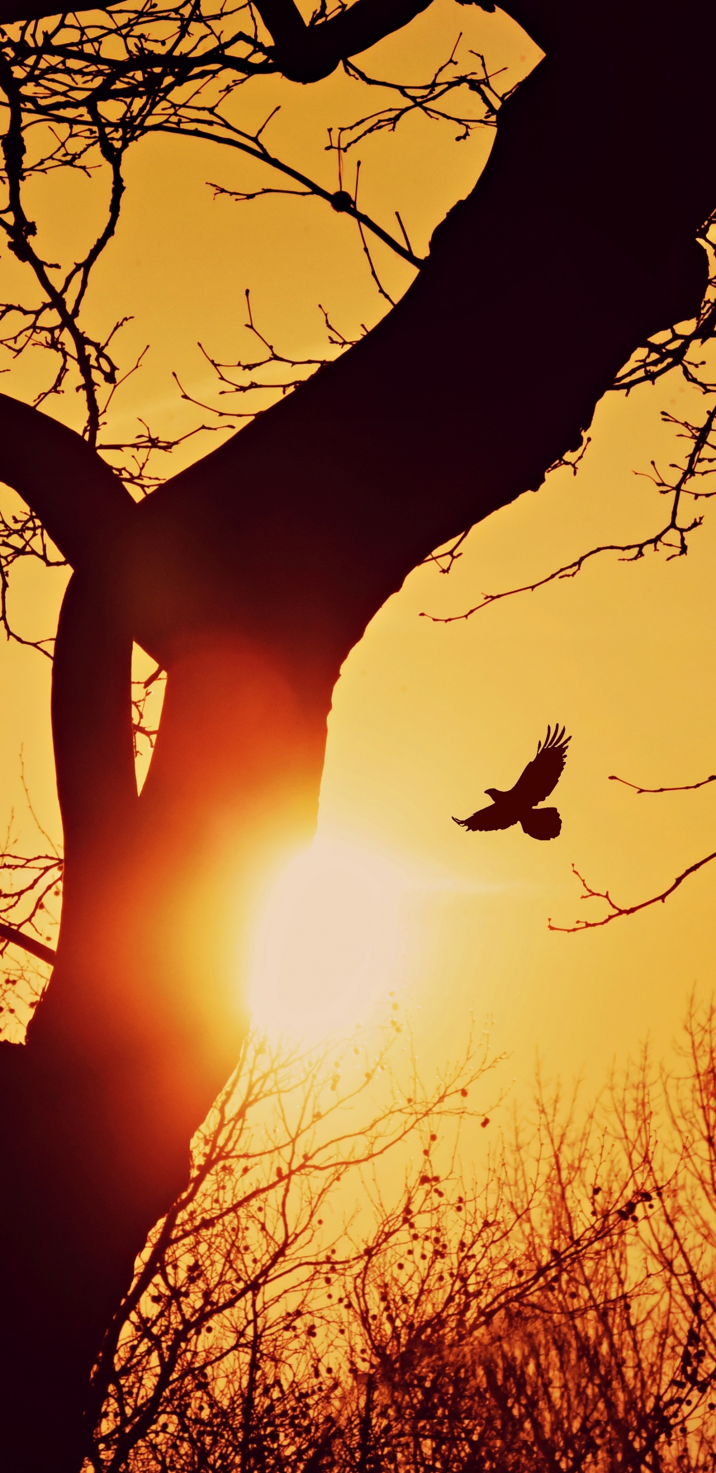 Fondos 1440x2960 Puesta, Silueta, Sucursal, Naturaleza, Naranja, Samsung Galaxy S8/S8+/S9/S9+/Note 8/Note 9 QHD Imágenes