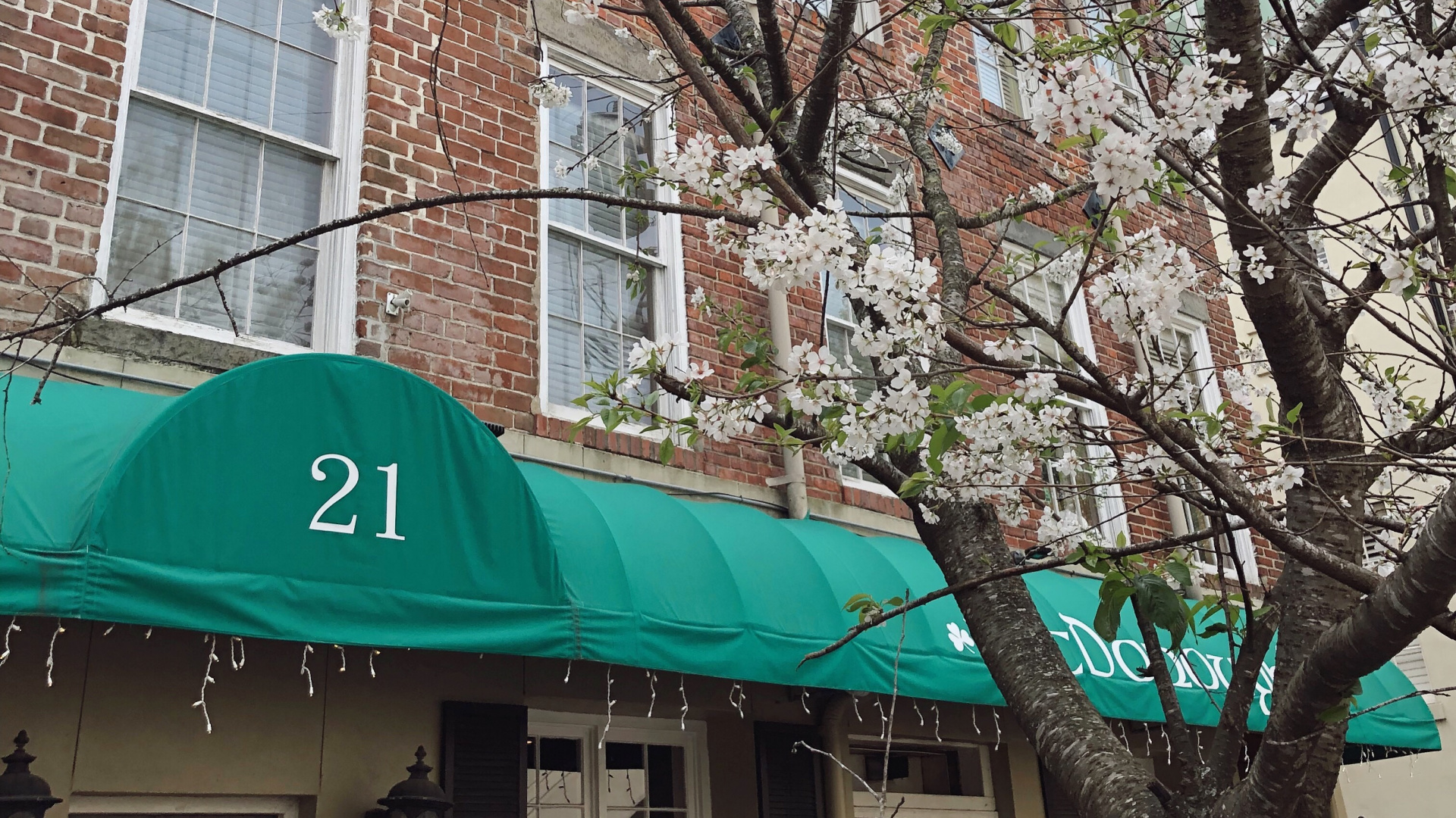 Fondos 1920x1080 Edificio de Hormigón Rojo y Blanco Cerca de Árboles Desnudos Durante el Día, Full HD, HDTV, 1080p 16:9 Imágenes