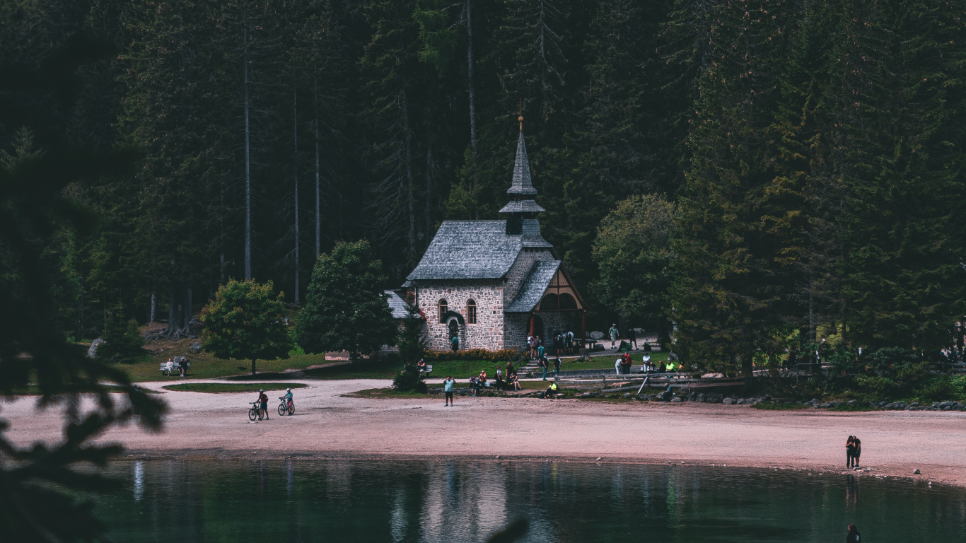 Fondos 1366x768 Casa Blanca y Gris Cerca Del Cuerpo de Agua y Árboles Verdes Durante el Día, Laptop Imágenes