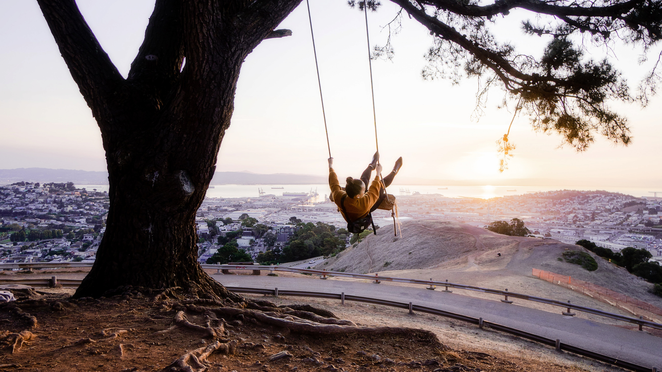 Fondos 2560x1440 Tronco de Árbol Marrón en la Playa Durante la Puesta de Sol, WQHD, QHD, 16:9 Imágenes