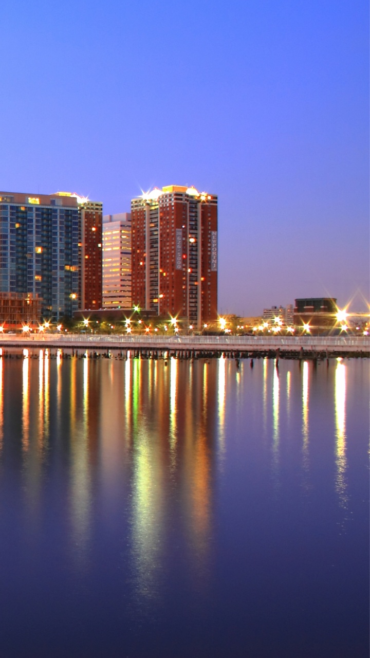 Fondos 720x1280 Horizonte de la Ciudad a Través Del Cuerpo de Agua Durante la Noche., Android Phone HD Samsung Galaxy S3/J3/J4/J5, Meizu M5, Sony Xperia L1/L2 Imágenes
