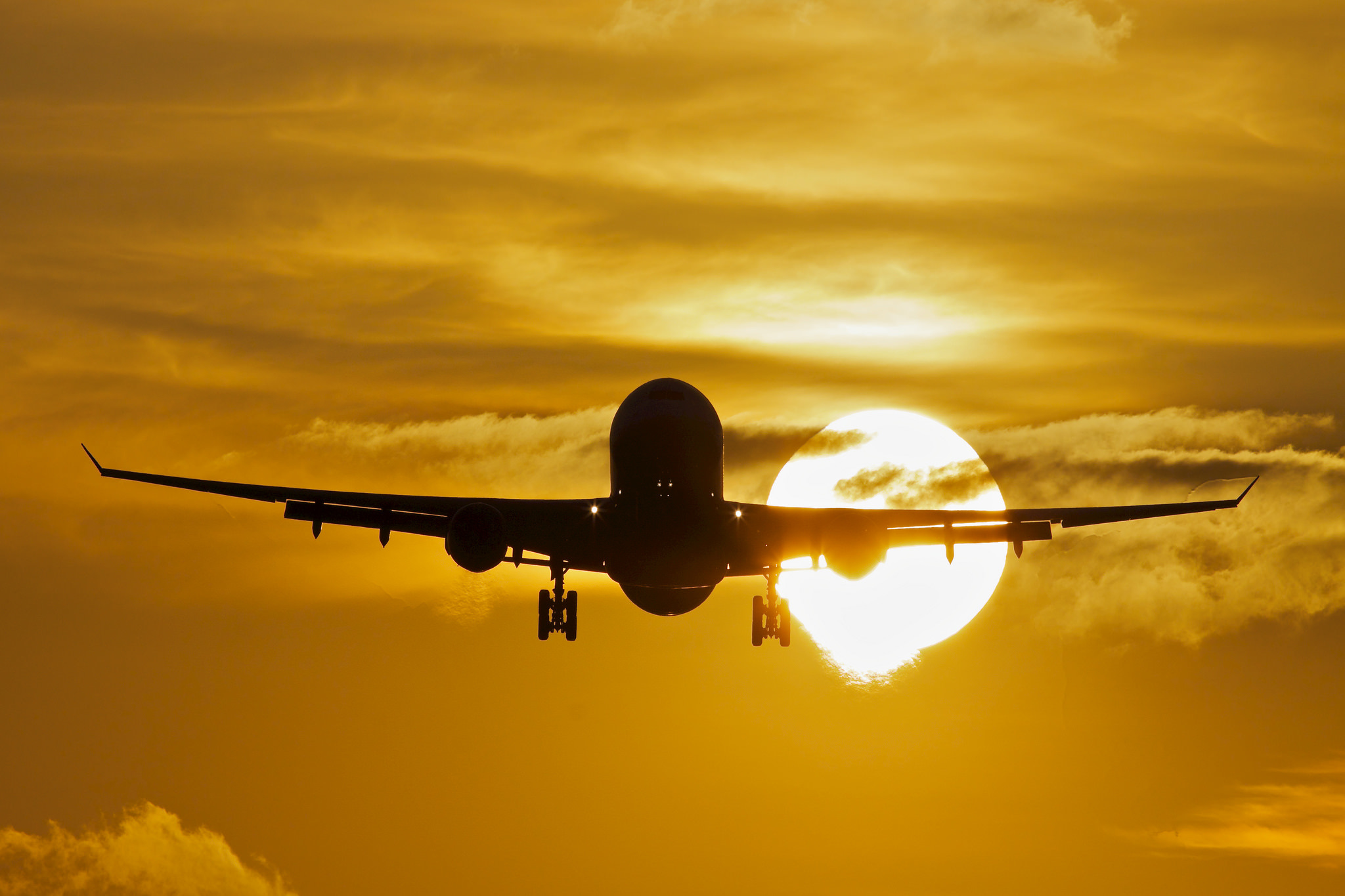 Fondos Avión Negro Bajo el Cielo Nublado Durante la Puesta de Sol de Pantalla e Imágenes