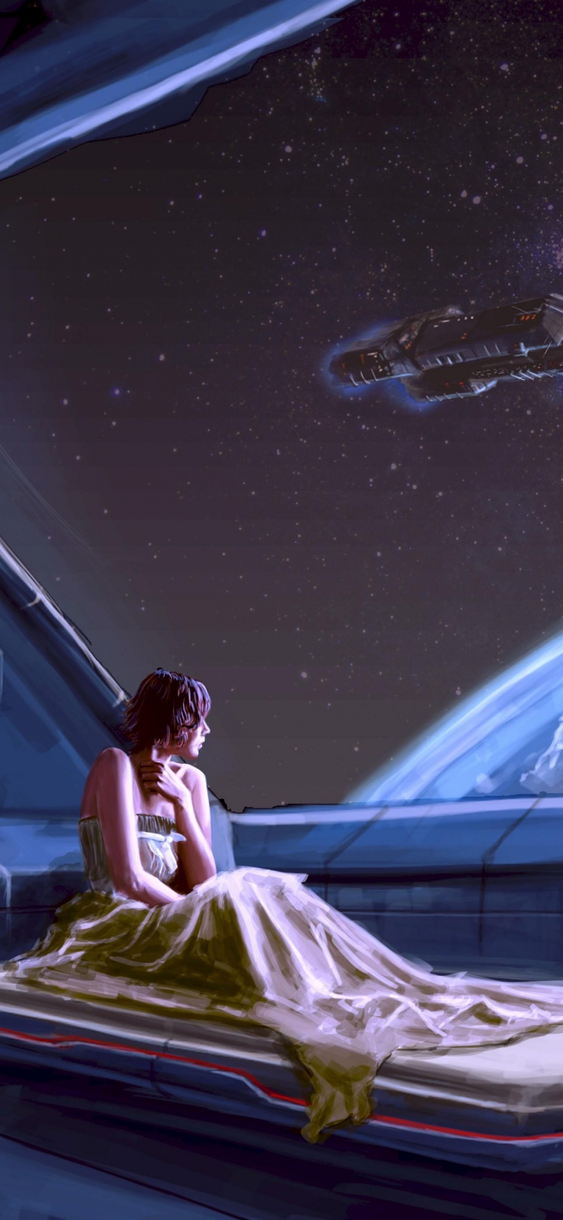 Fondos 1125x2436 Mujer en Vestido Blanco Sentada en Textil Blanco, IPhone X / XS Imágenes