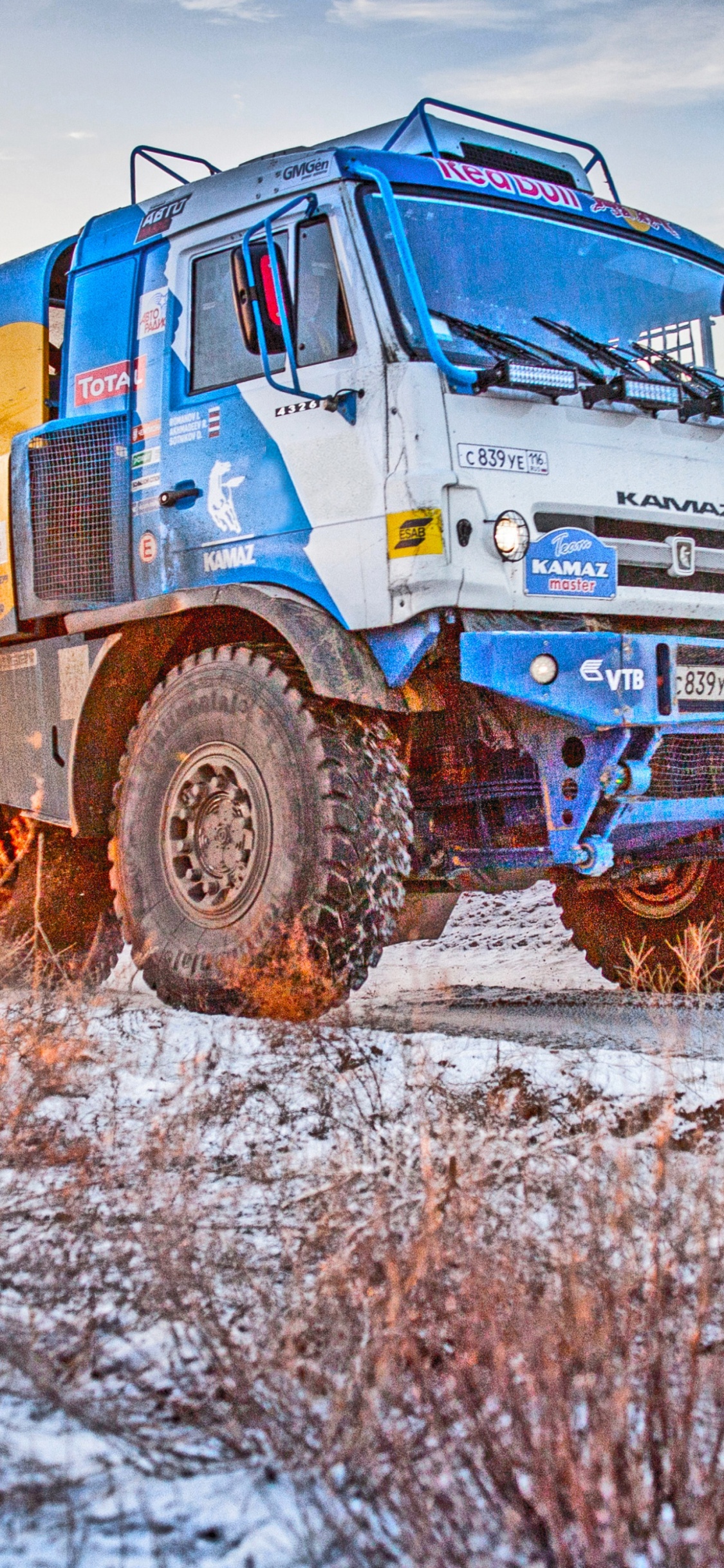 Fondos 1125x2436 Camión Azul y Blanco Sobre Suelo Cubierto de Nieve Durante el Día, IPhone X / XS Imágenes