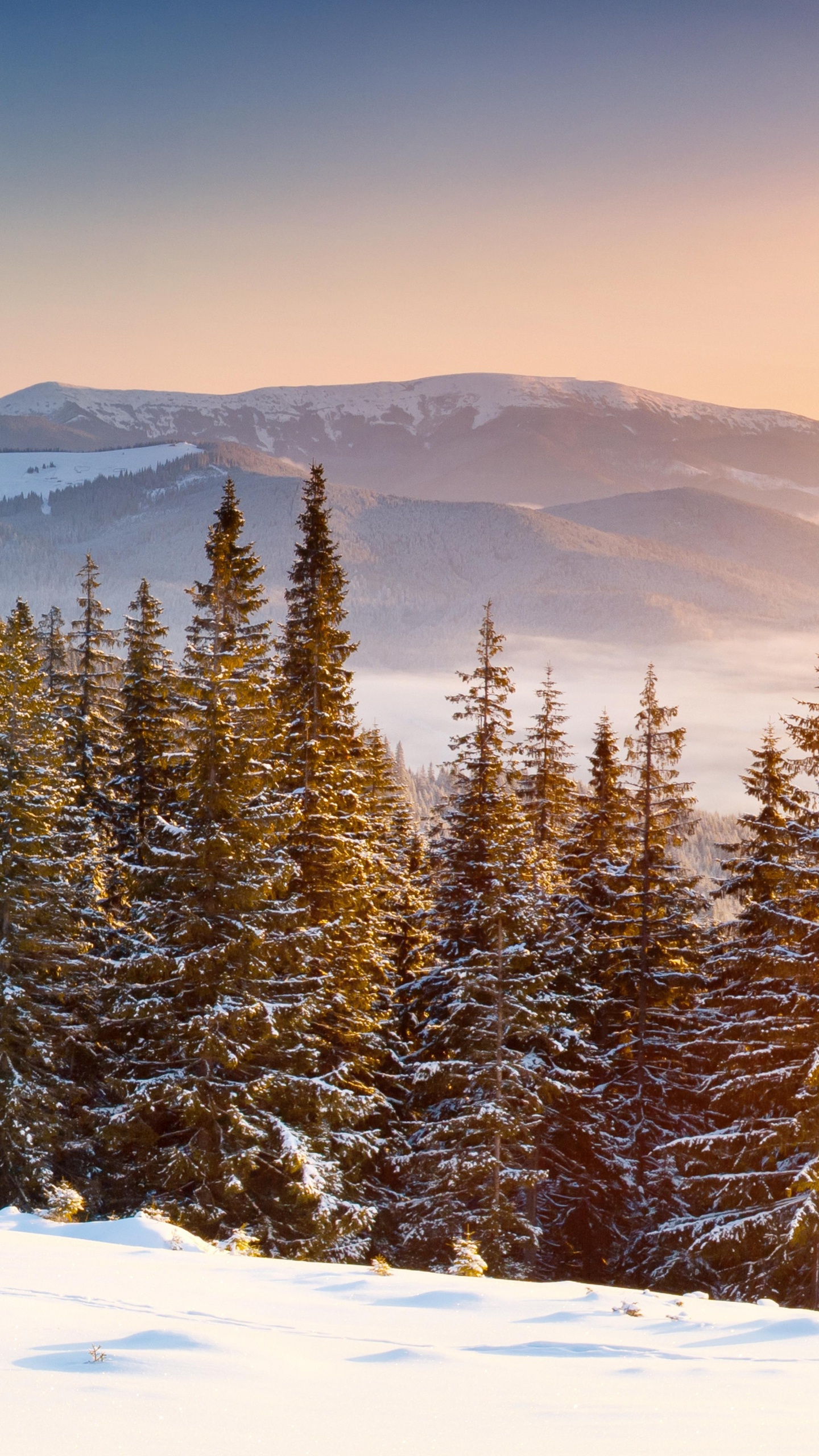 Fondos 1440x2560 Pinos Verdes Sobre Suelo Cubierto de Nieve Durante el Día, Google Pixel XL, Meizu Pro 7, Nokia 8, HTC U, Huawei P10 Quad HD Imágenes