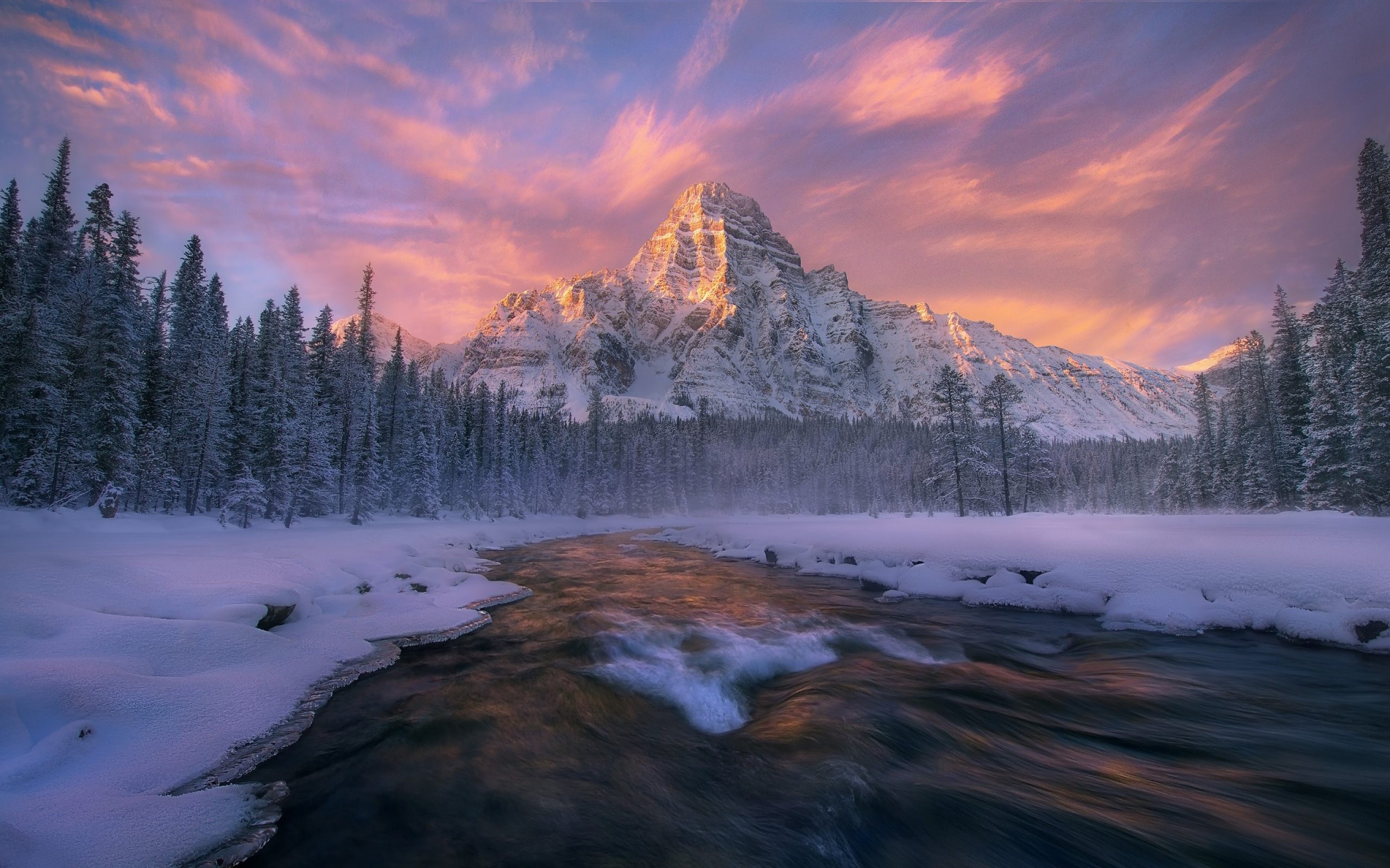 Fondos Montañas Cubiertas de Nieve y Pinos de Pantalla e Imágenes