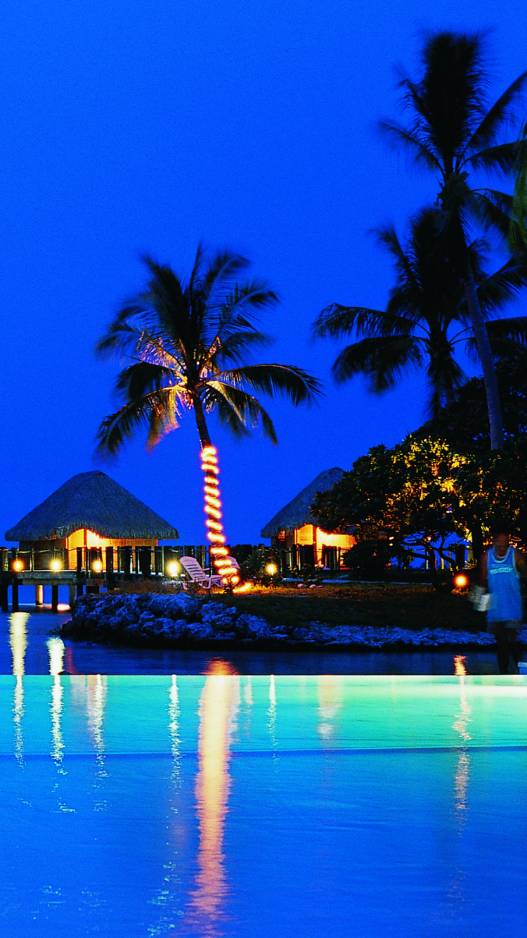 Fondos 750x1334 Casa de Madera Marrón y Verde Cerca de Palmeras Durante la Noche, IPhone 6, 6S, 7, 8 Imágenes