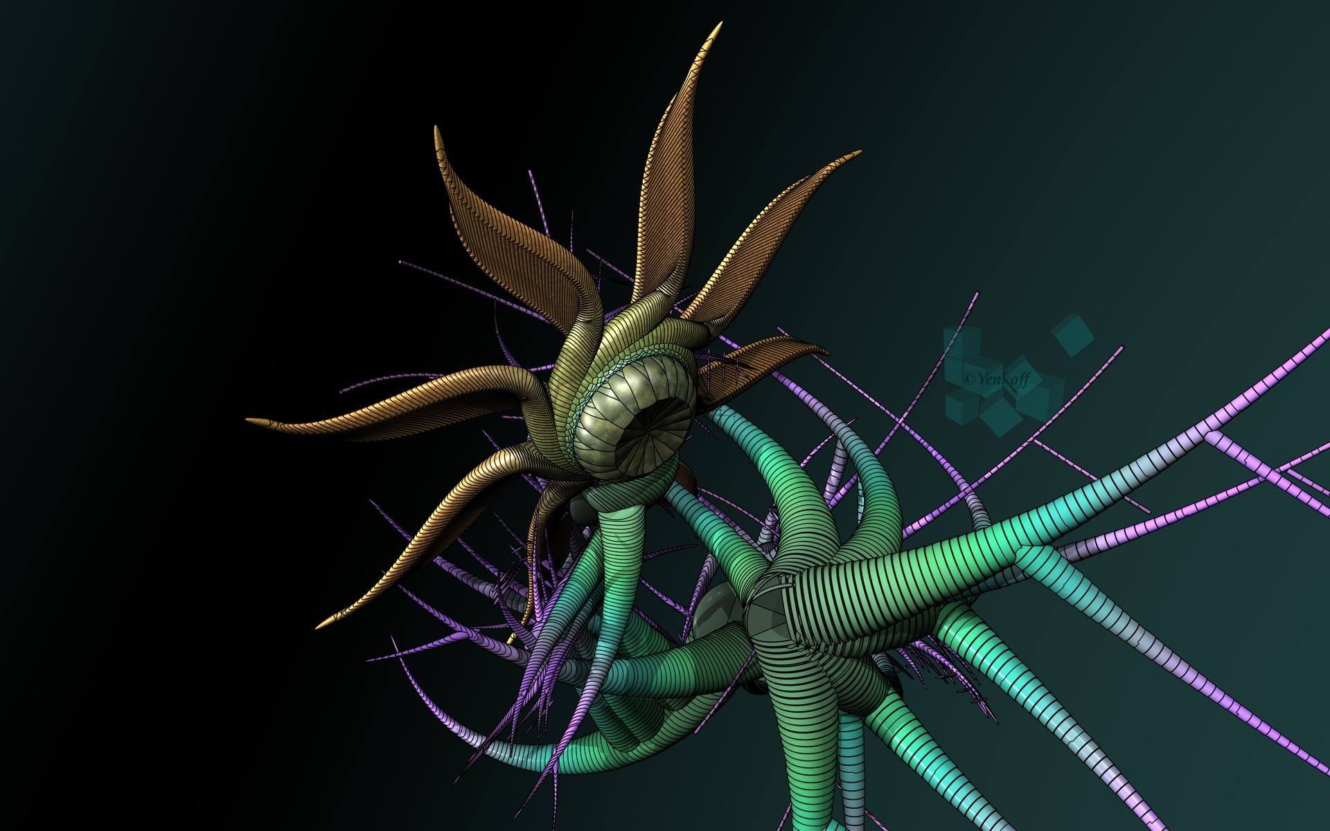 Fondos Ilustración de Flor Morada y Verde de Pantalla e Imágenes