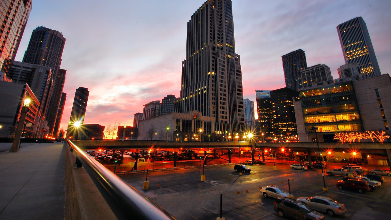 Fondos 1280x720 Edificios de la Ciudad Bajo un Cielo Gris Durante la Noche, HD, HDV, 720p, 16:9 Imágenes
