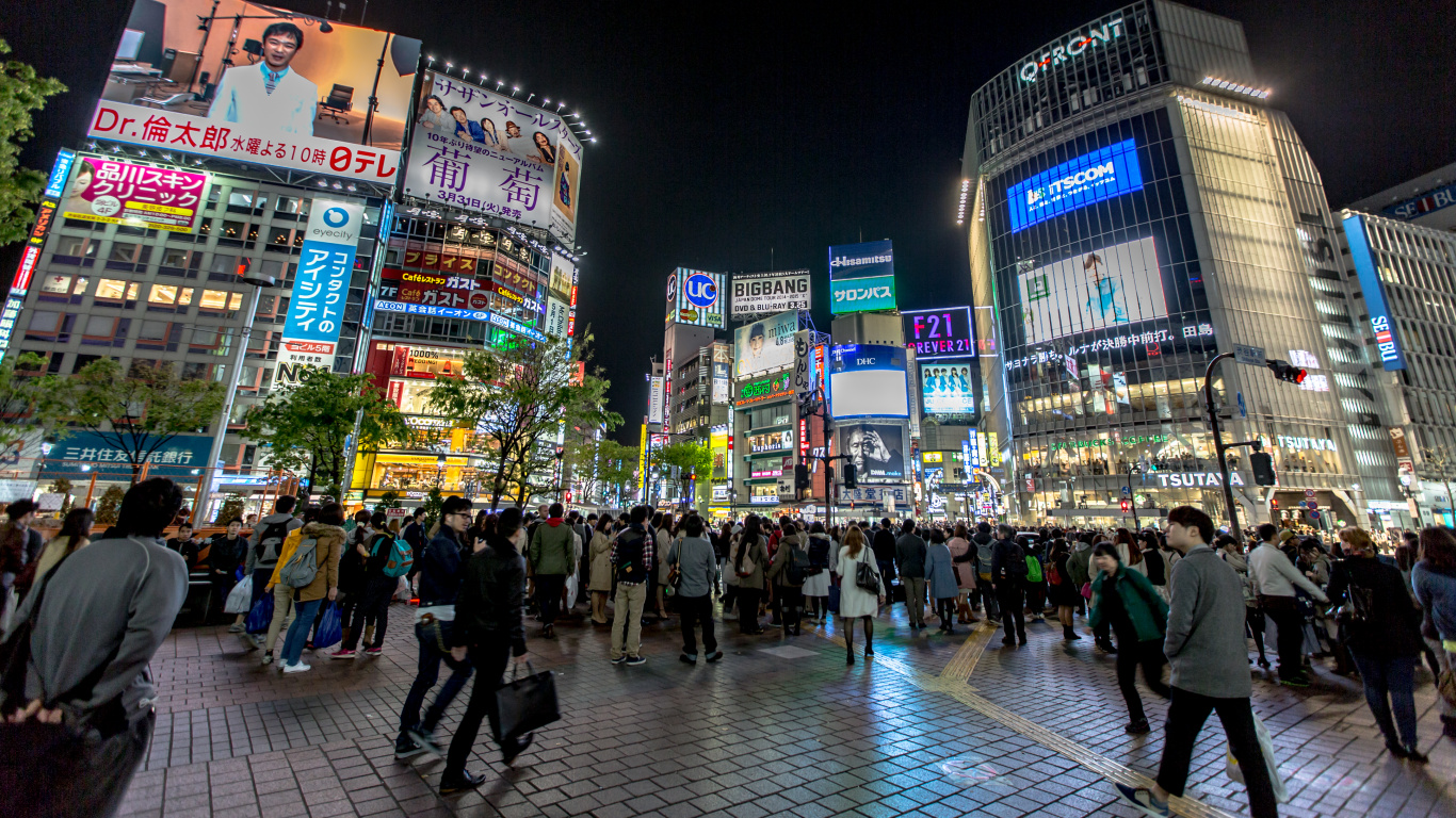 Fondos 1366x768 Gente Caminando en la Calle Durante la Noche, Laptop Imágenes